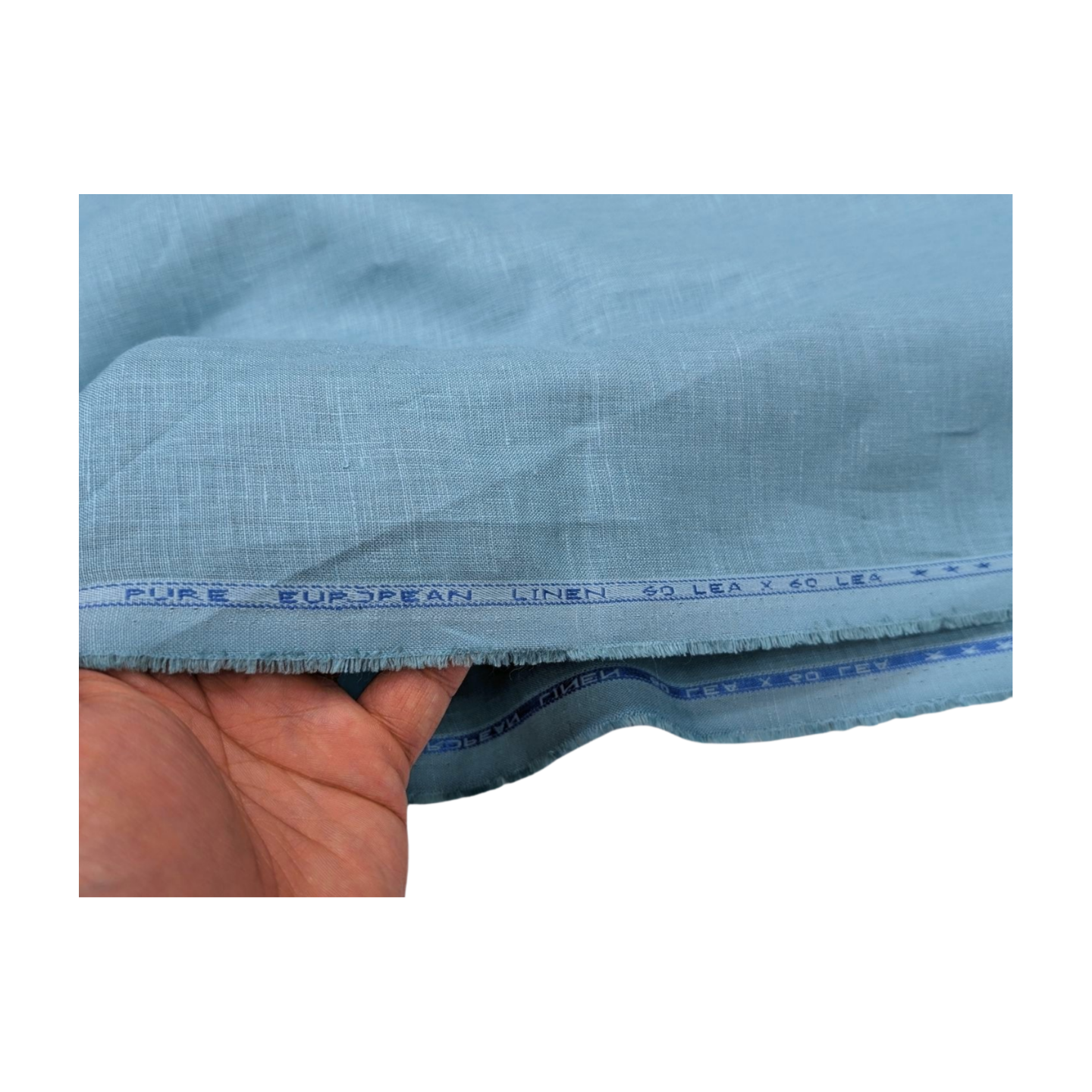 100% European Linen Shirt Fabric (Sea Blue) - 60 LEA