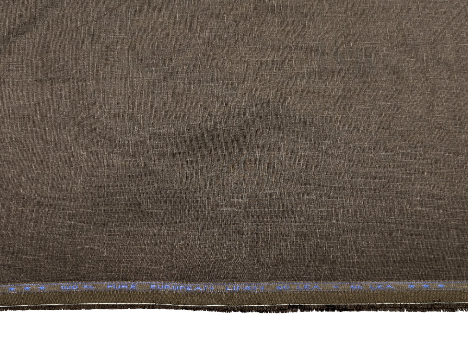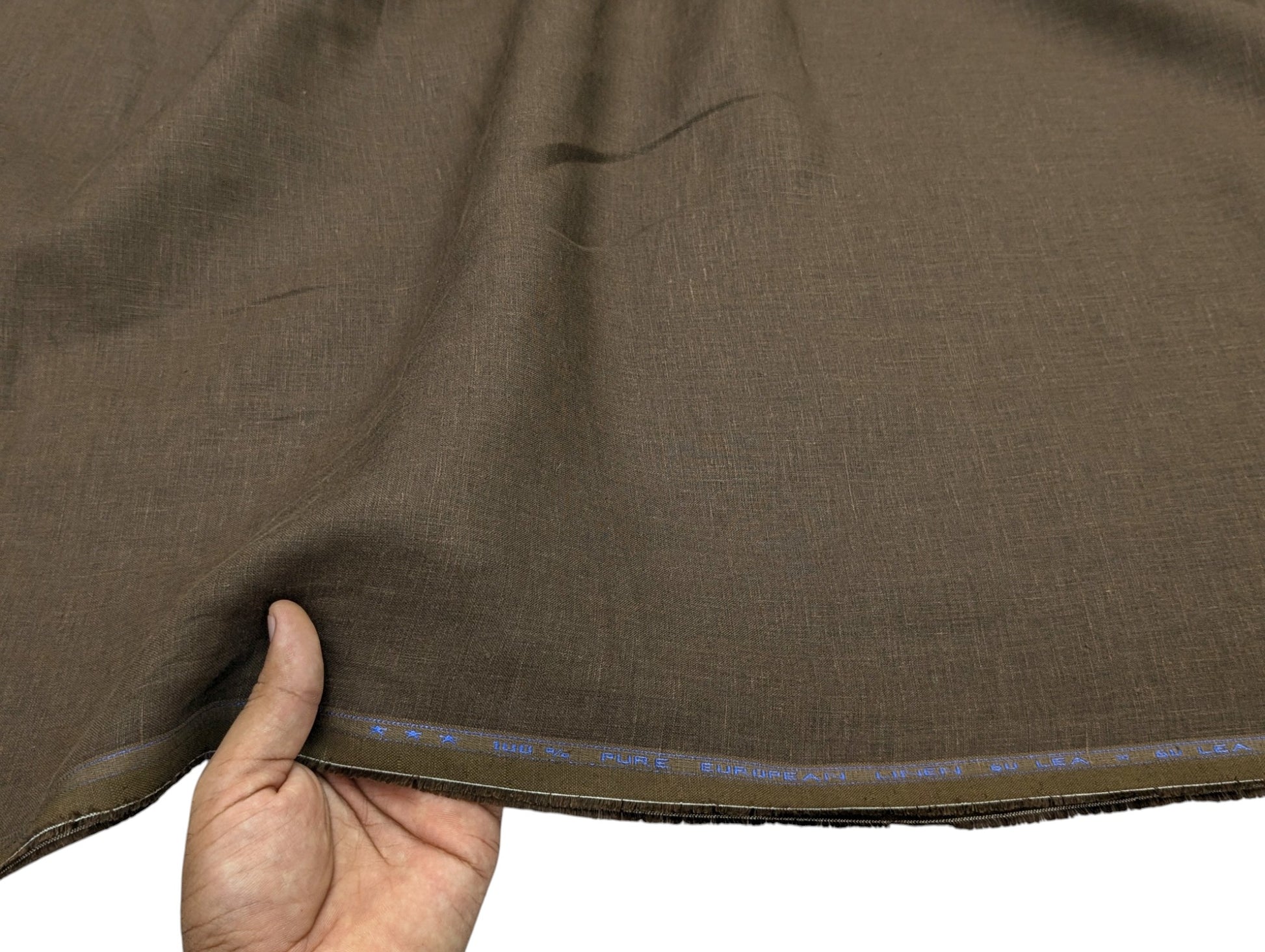 100% European Linen Shirt Fabric (Dark Brown) - 60 LEA