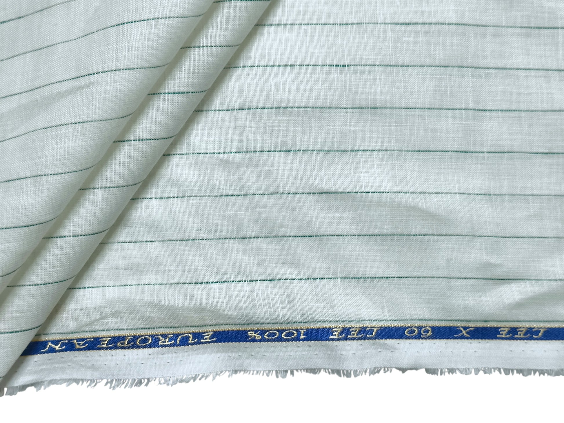 100% Pure European Linen 60 LEA Shirting Fabric (Offwhite & Green , Stripes)