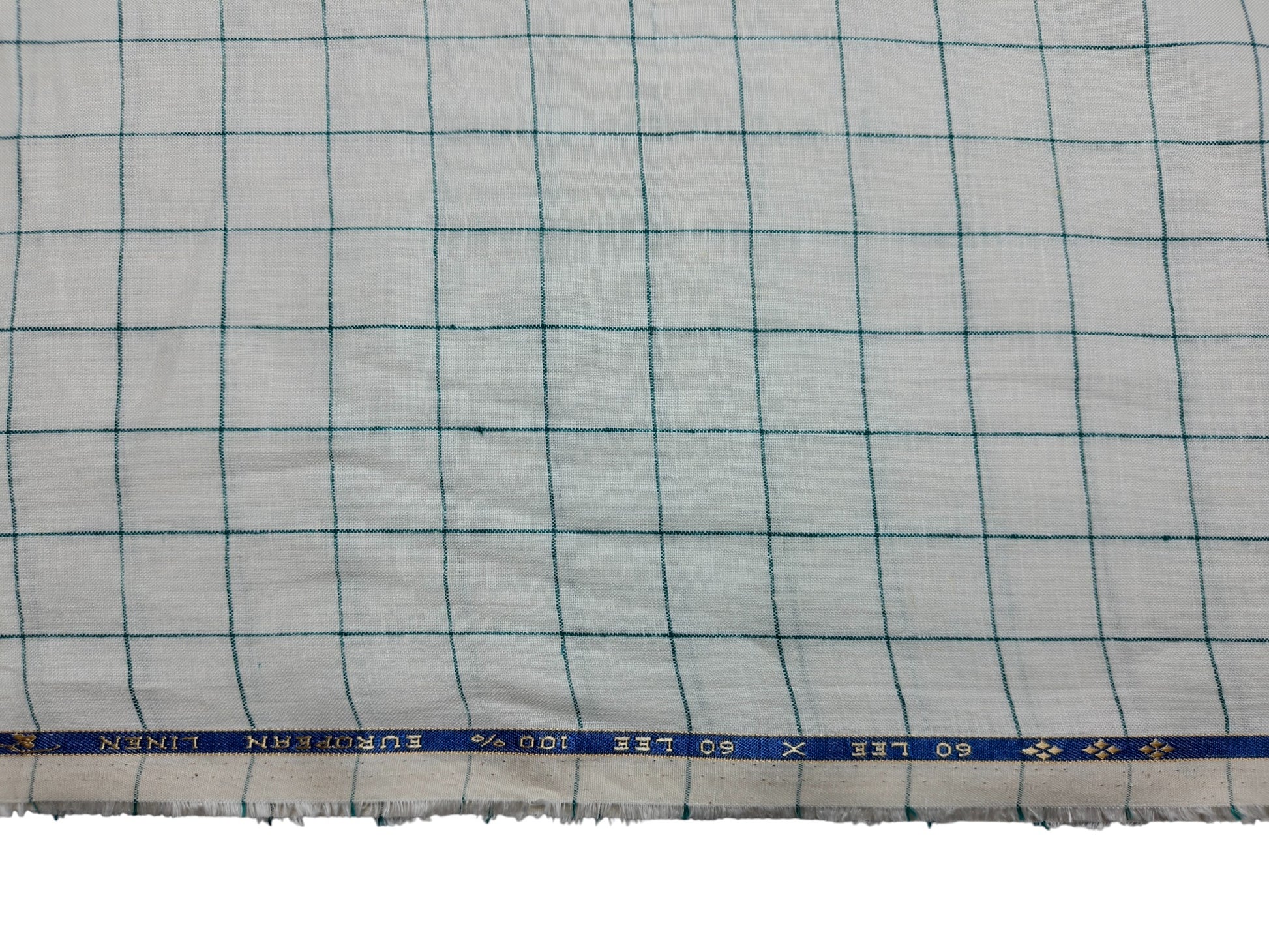 100% Pure European Linen 60 LEA Shirting Fabric (White & Green , Checks)