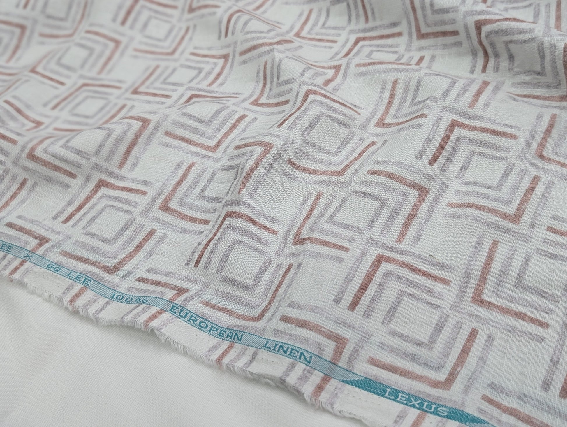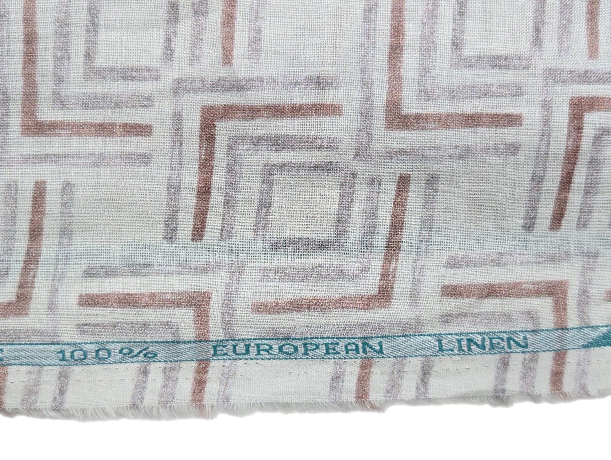 100% Pure European Linen 60 LEA Shirting Fabric (White, Maroon & Grey, Printed)