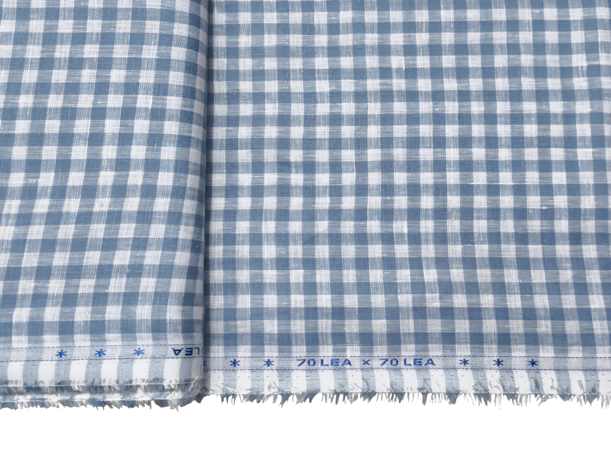 100% Pure European Linen 70 LEA Shirting Fabric (White And Blue, Checks)