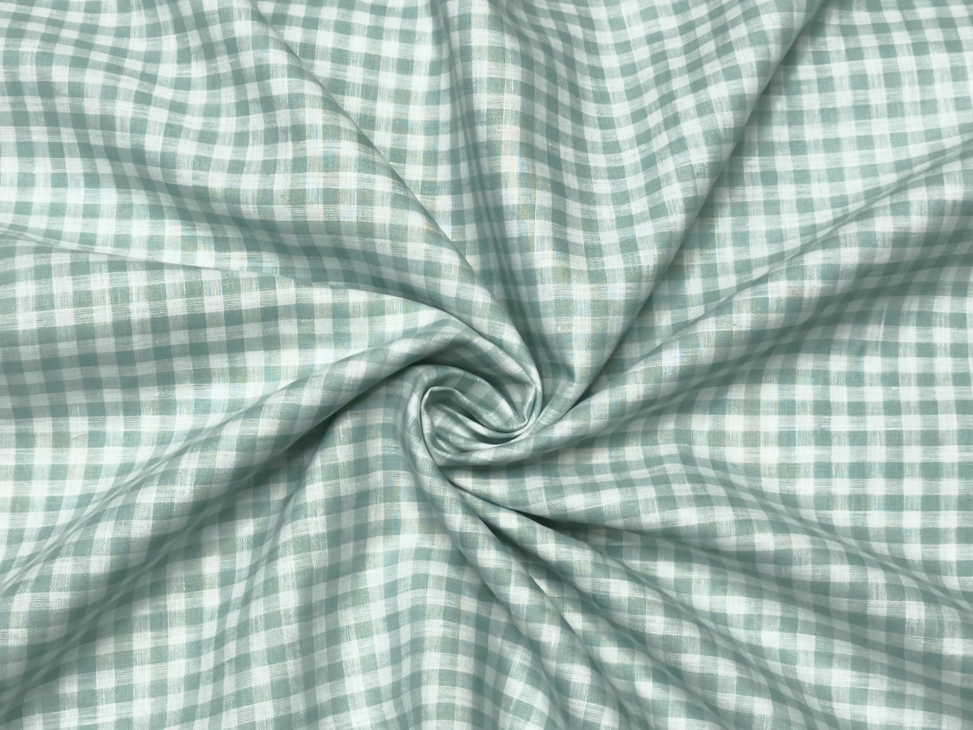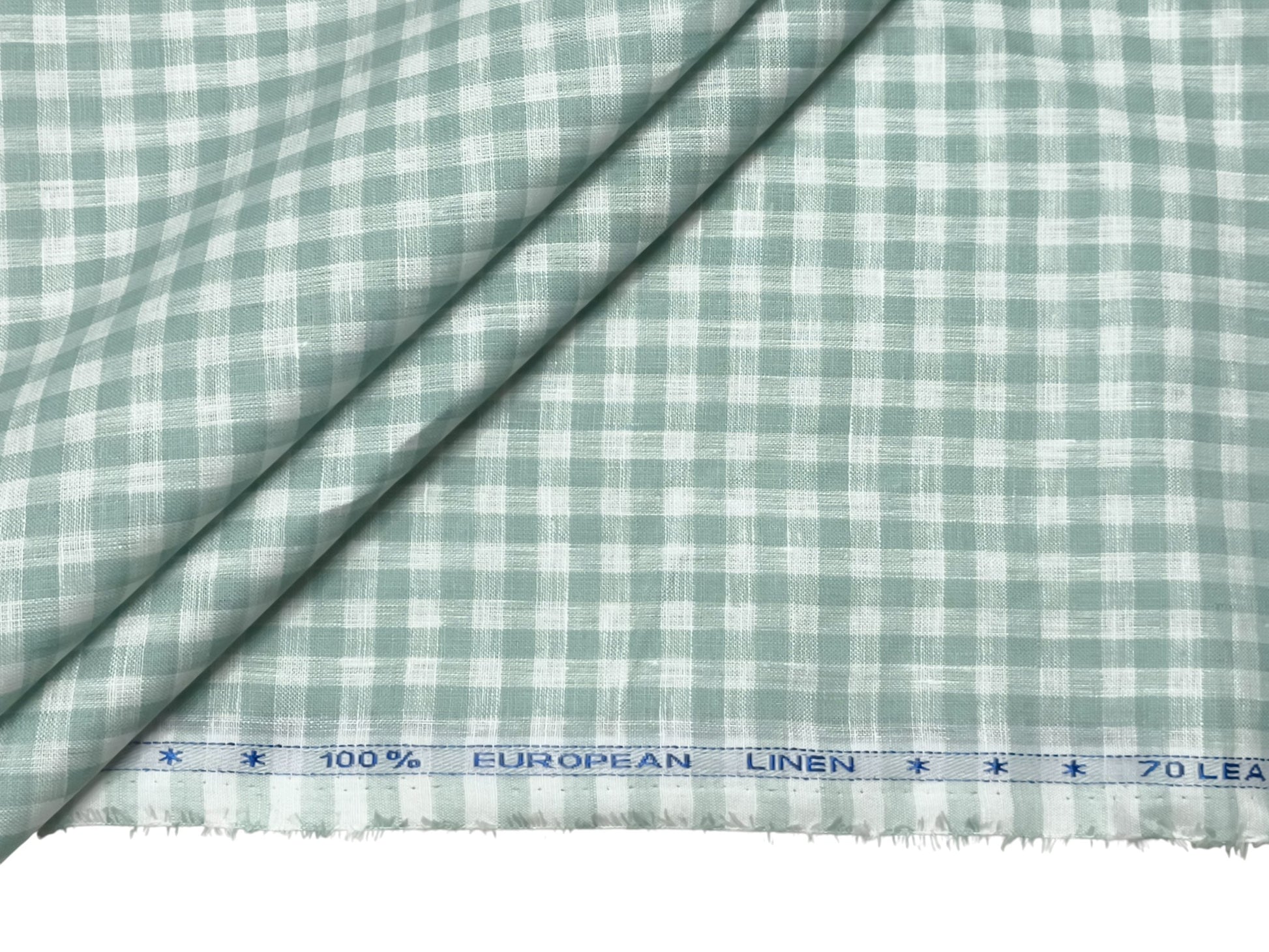 100% Pure European Linen 70 LEA Shirting Fabric (White And Green, Checks)