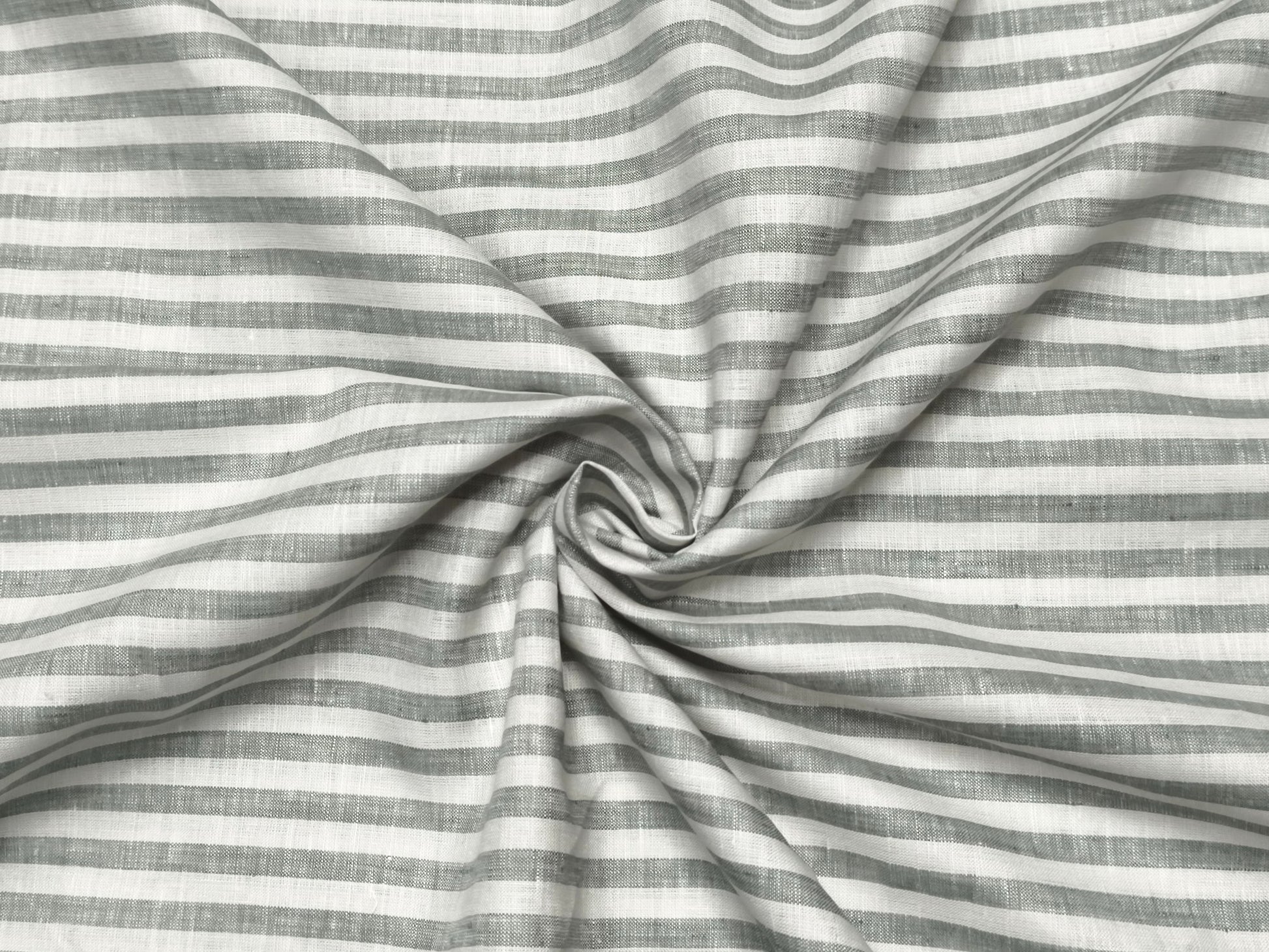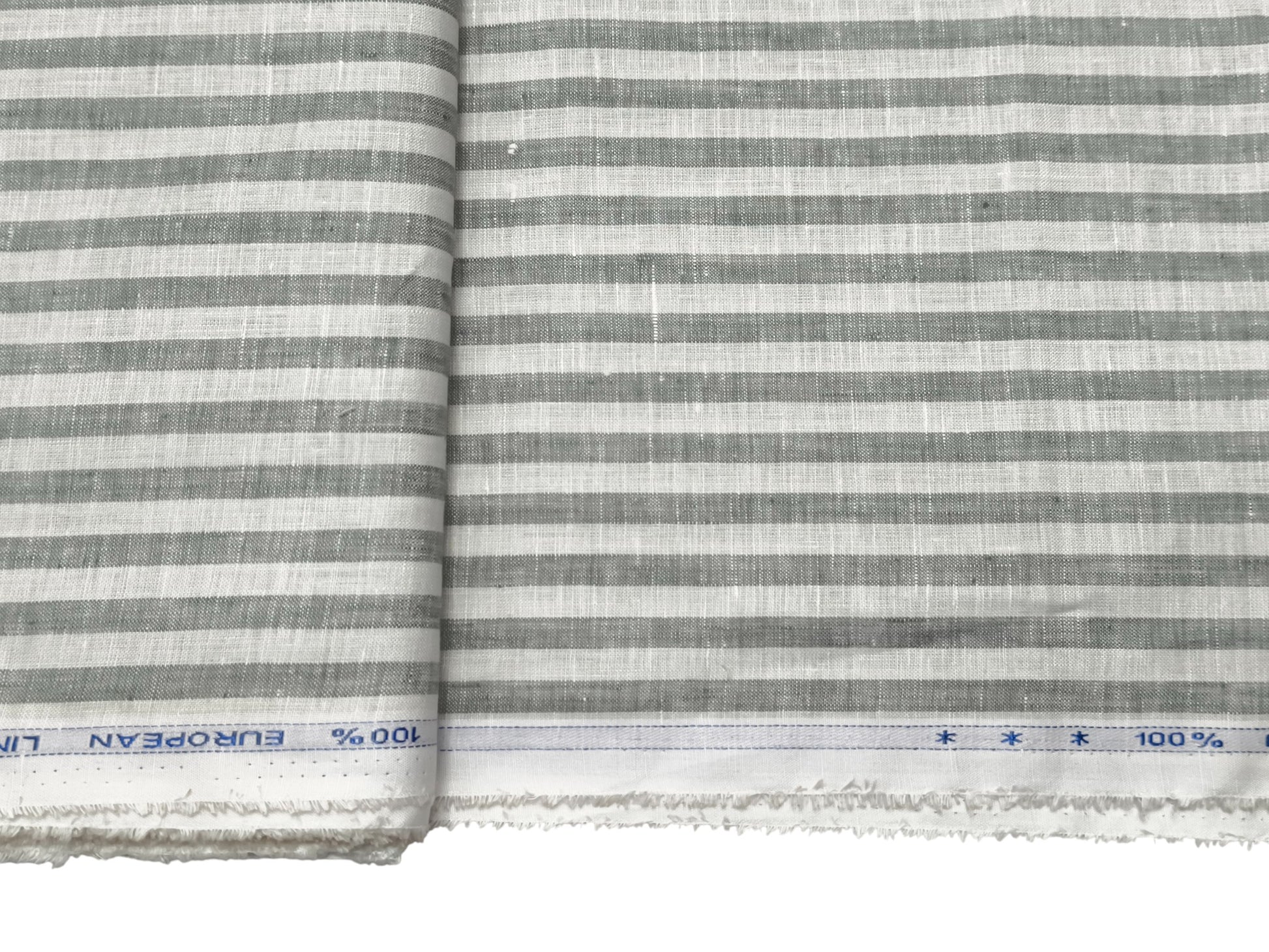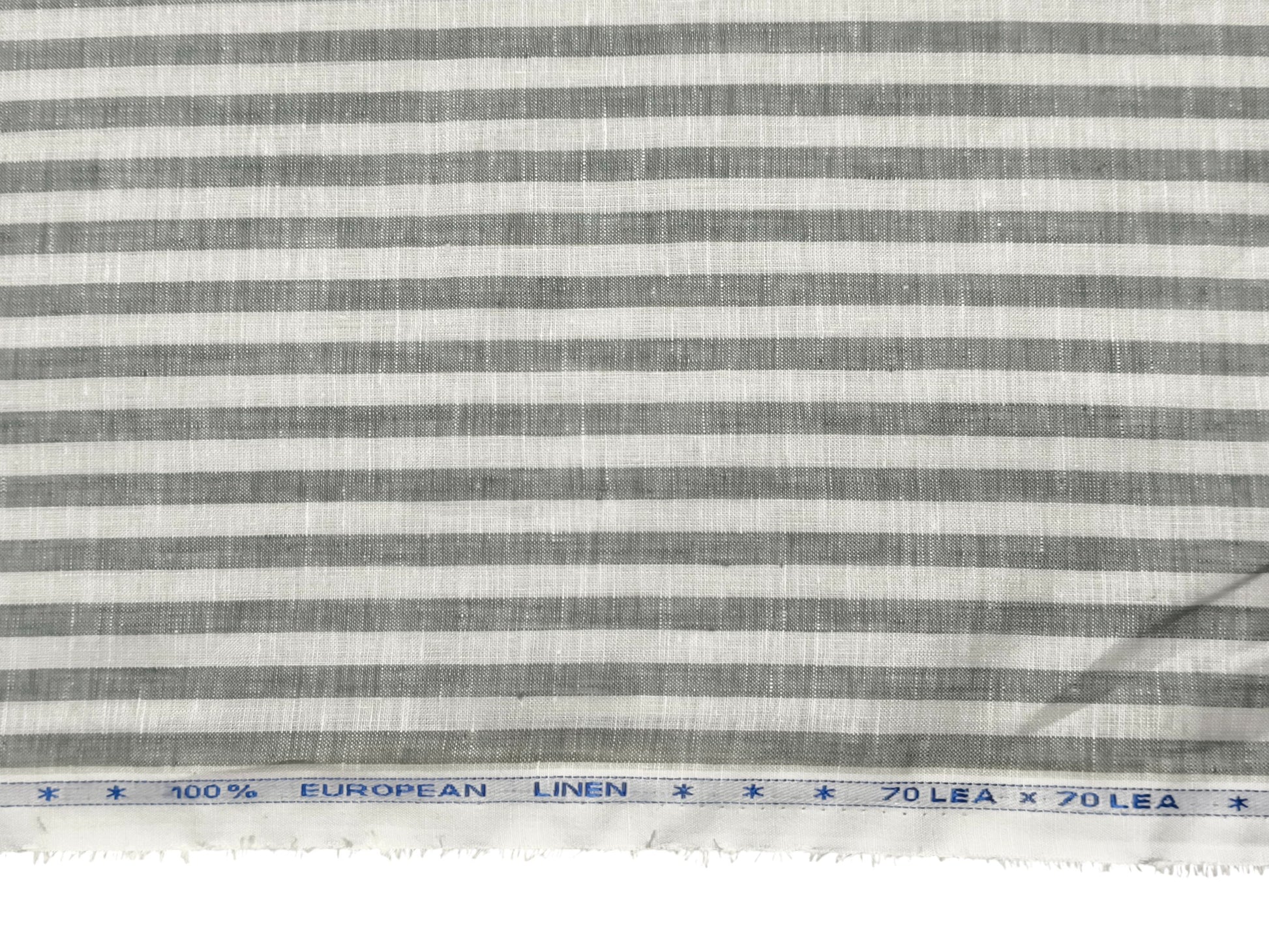 100% Pure European Linen 70 LEA Shirting Fabric (White And Grey, Striped)