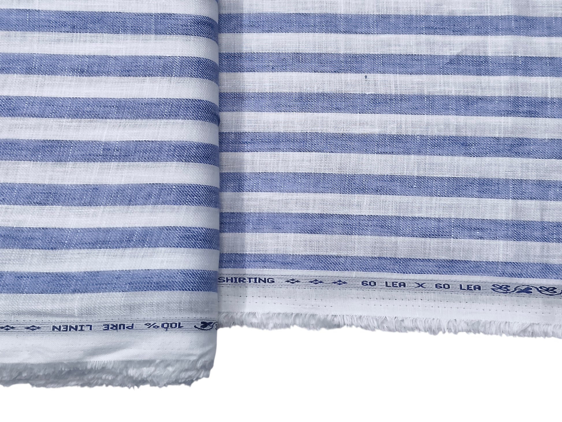 100% Pure Linen 60 LEA Shirting Fabric (White & Blue, Striped)