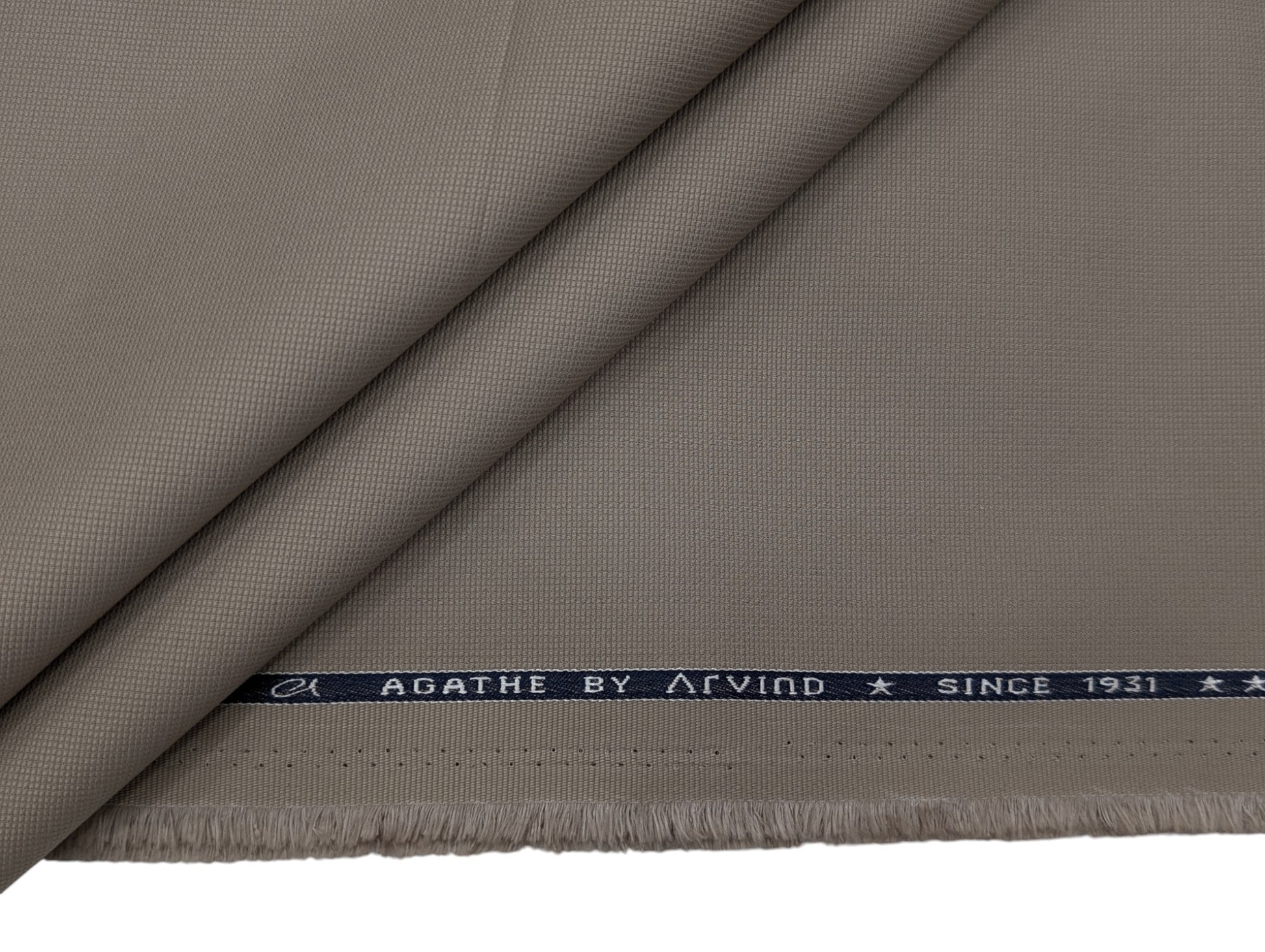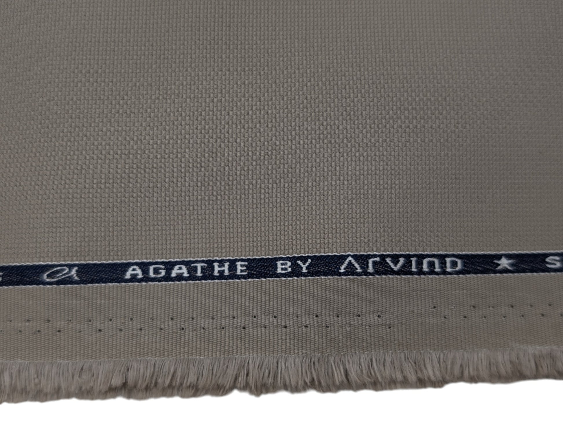 Discover sophisticated comfort with this premium 100% cotton suiting fabric from Arvind’s distinguished Agathe collection. Featuring a soft stone beige tone and a subtle textured weave, this fabric brings together natural breathability with timeless elegance — ideal for warm climates and all-day wear.
