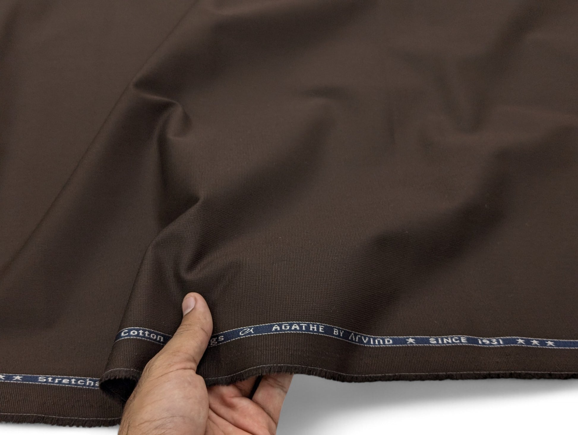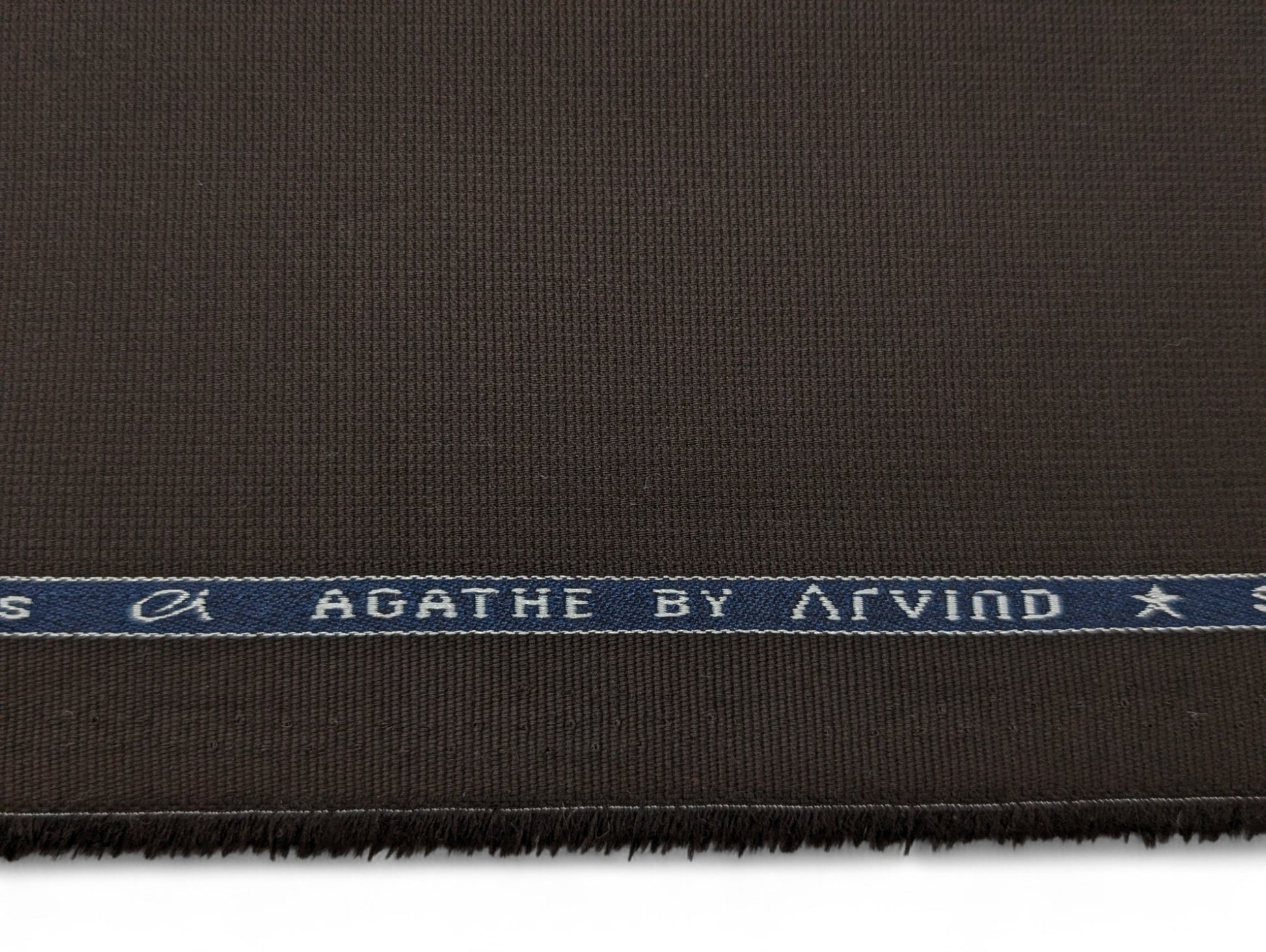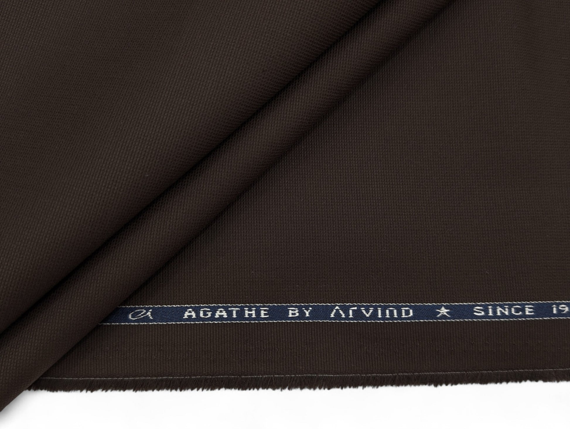 Discover sophisticated comfort with this premium 100% cotton suiting fabric from Arvind’s distinguished Agathe collection. Featuring a refined Dark Brown tone and a subtle textured weave, this fabric brings together natural breathability with timeless elegance — ideal for warm climates and all-day wear.