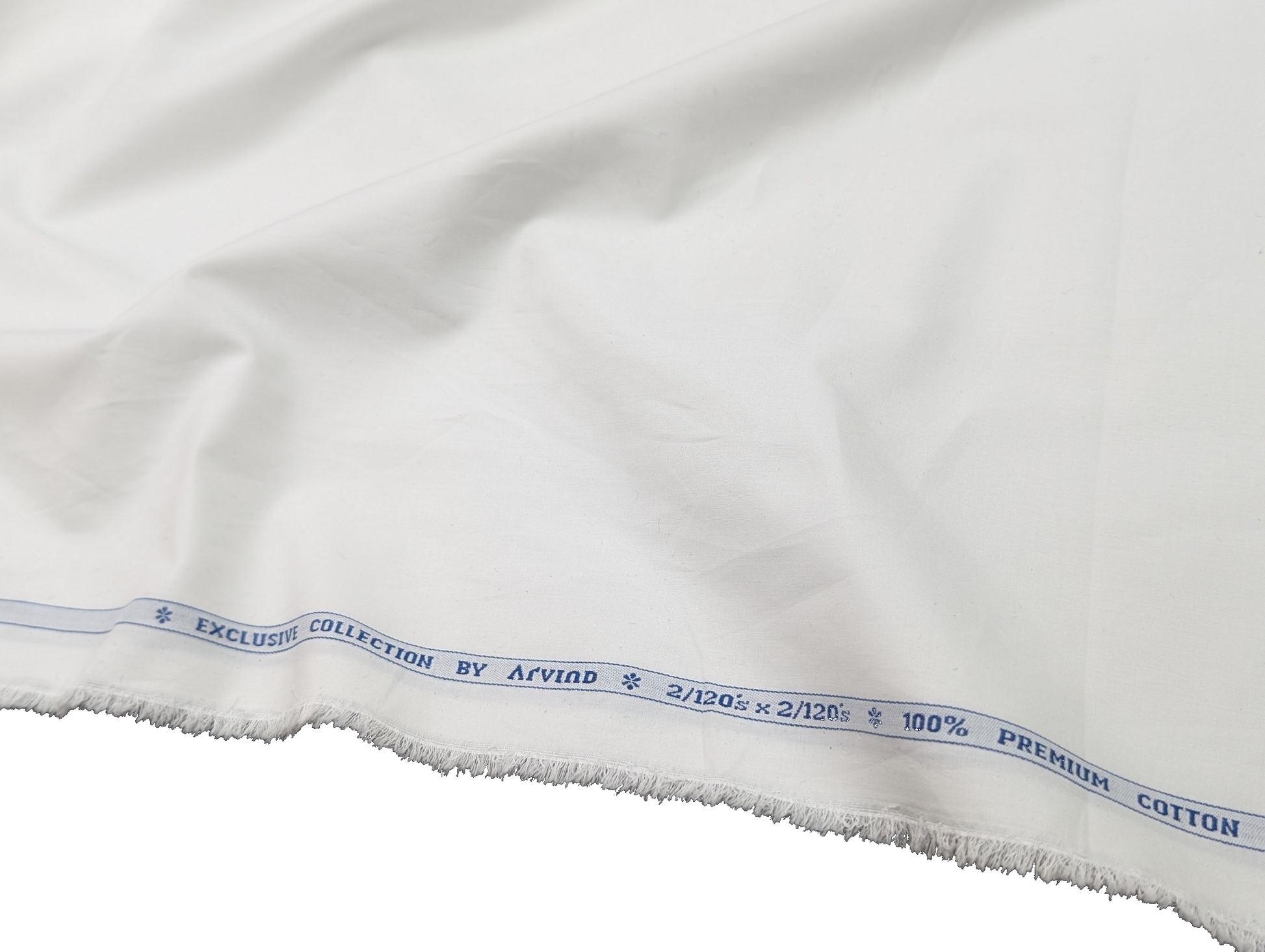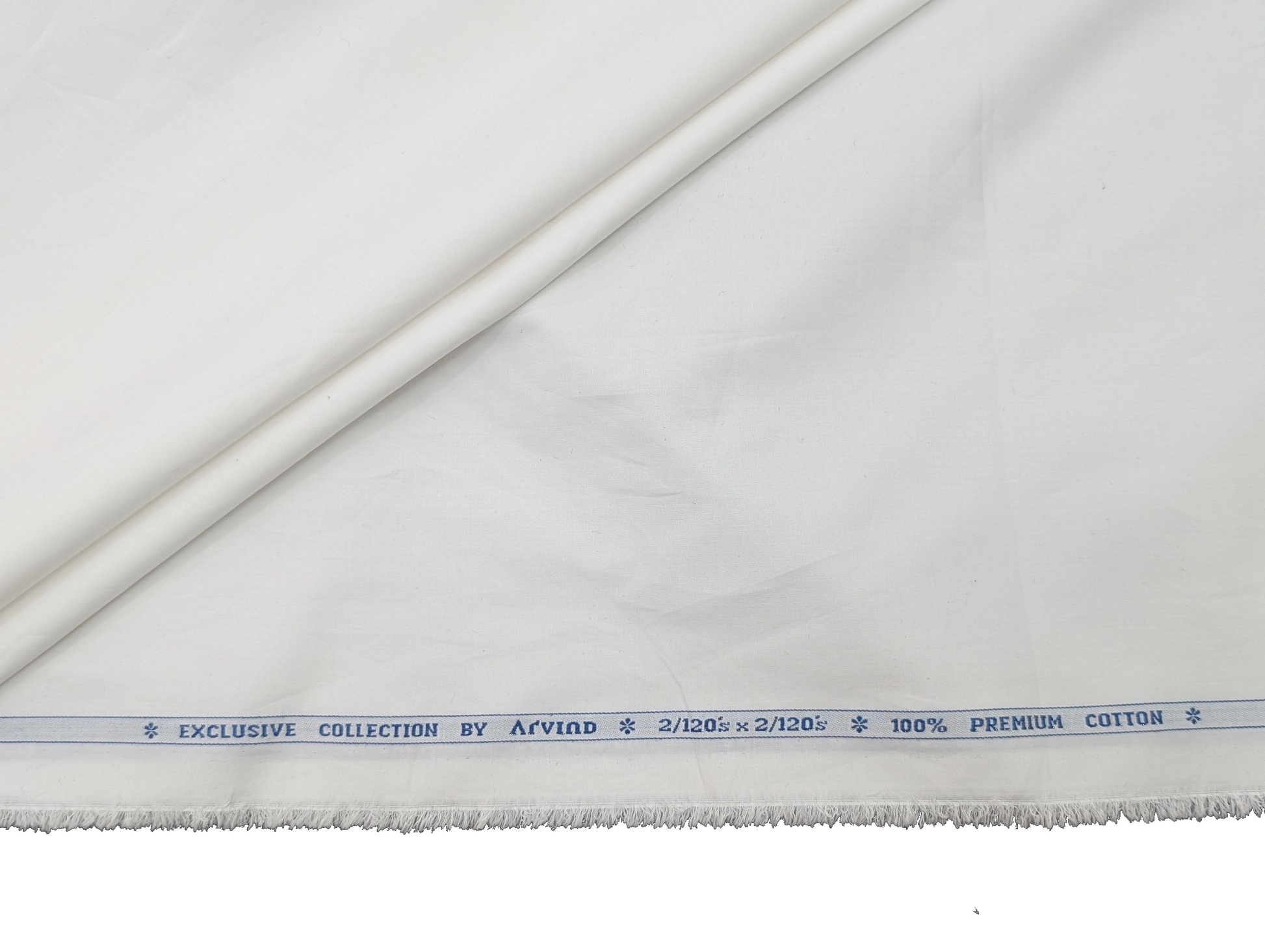 Arvind Exclusive Collection – 2/120s Premium Cotton Shirting Fabric (White)