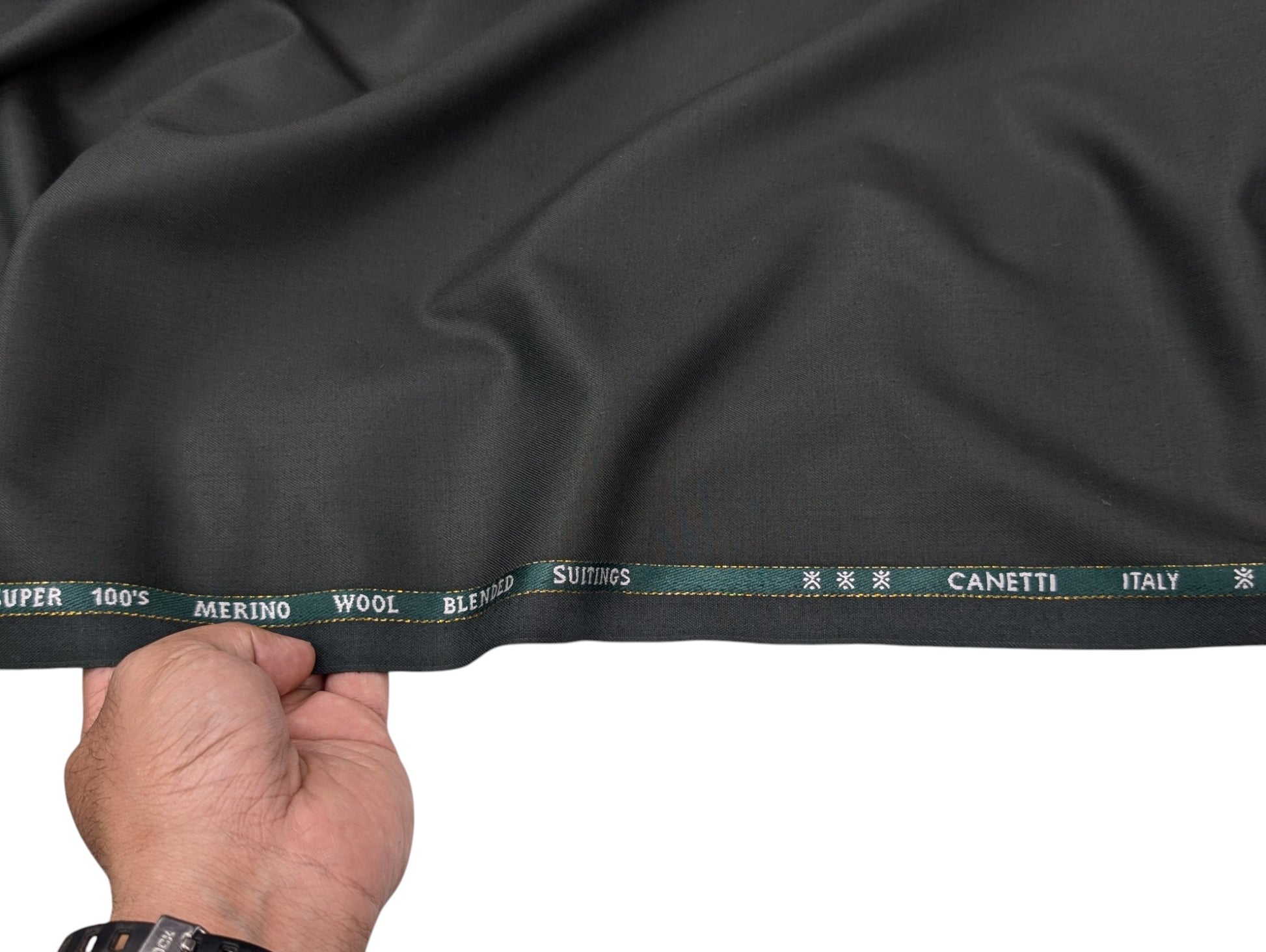 Canetti Italy Super 100's Merino Wool Blend Suiting Fabric (Bottle Green, Subtle Weave)
