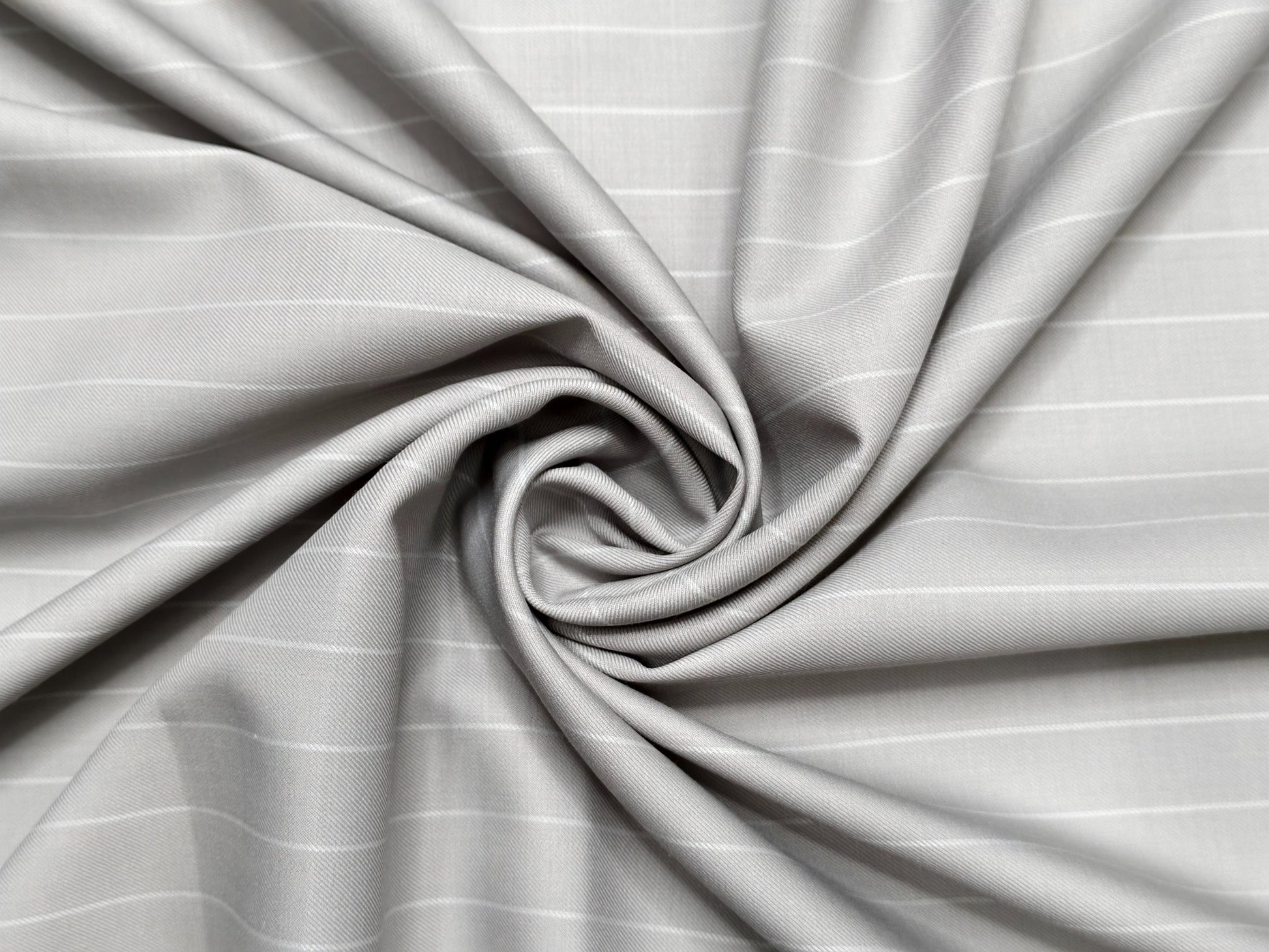 The elegant Silver Grey shade with subtle pinstripes offers a refined, boardroom-ready look that remains timeless and versatile. Perfect for creating premium business suits, blazers, formal trousers, and wedding attire, this fabric blends sophistication, comfort, and durability in every stitch.