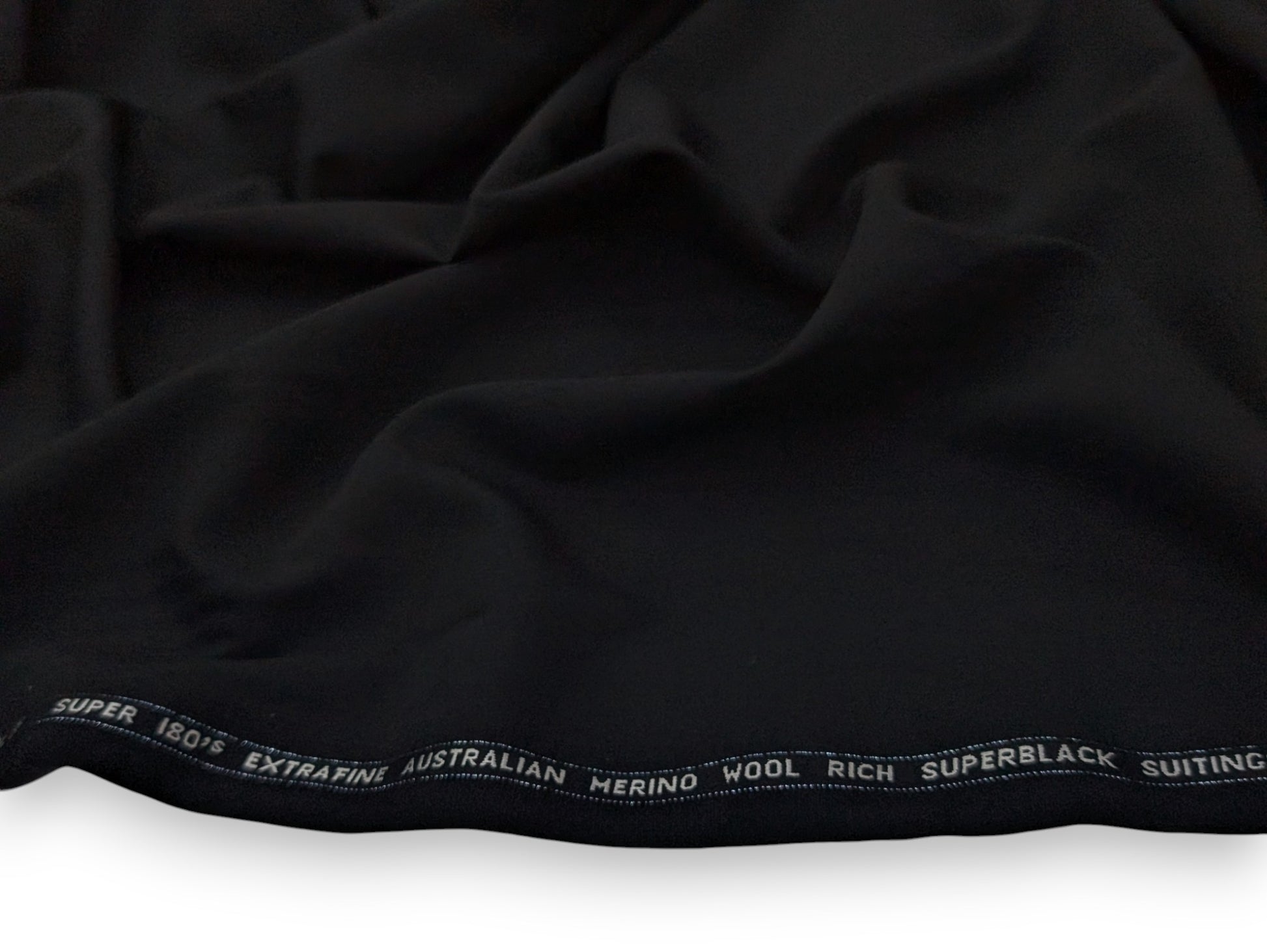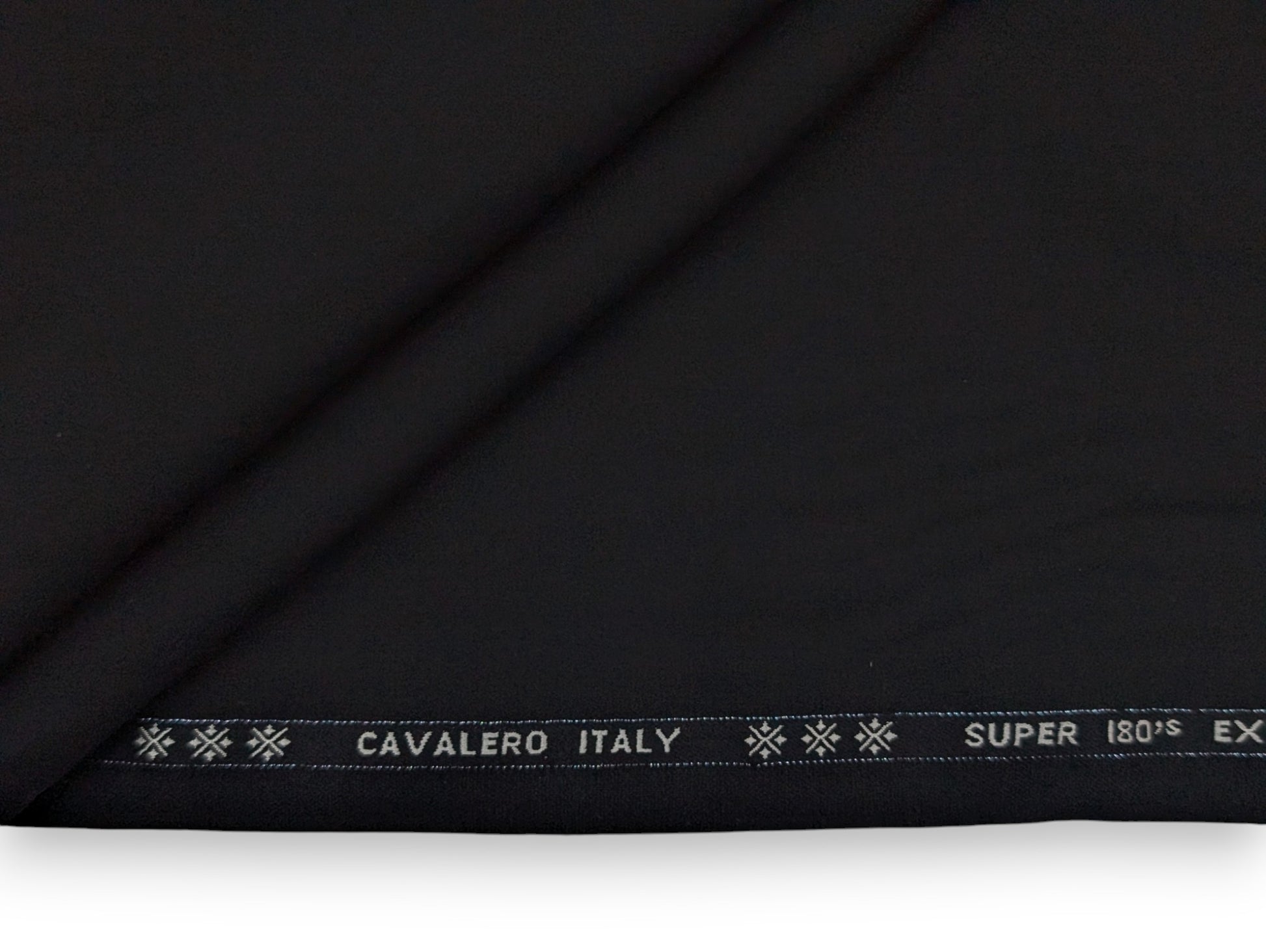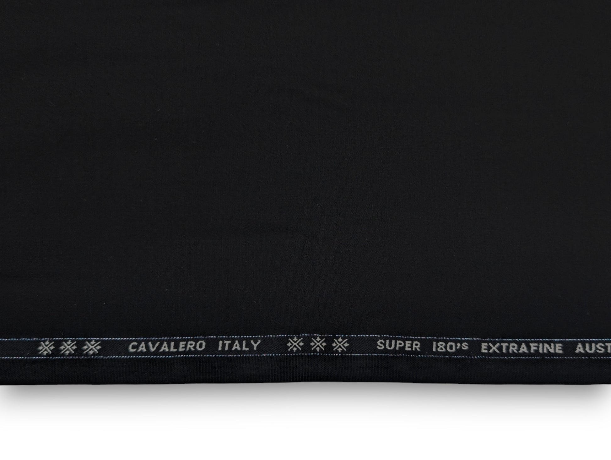 Cavalero Italy 95% Wool Super 180’s Extrafine Australian Merino Wool Unstitched Suiting Fabric (Pure Black)