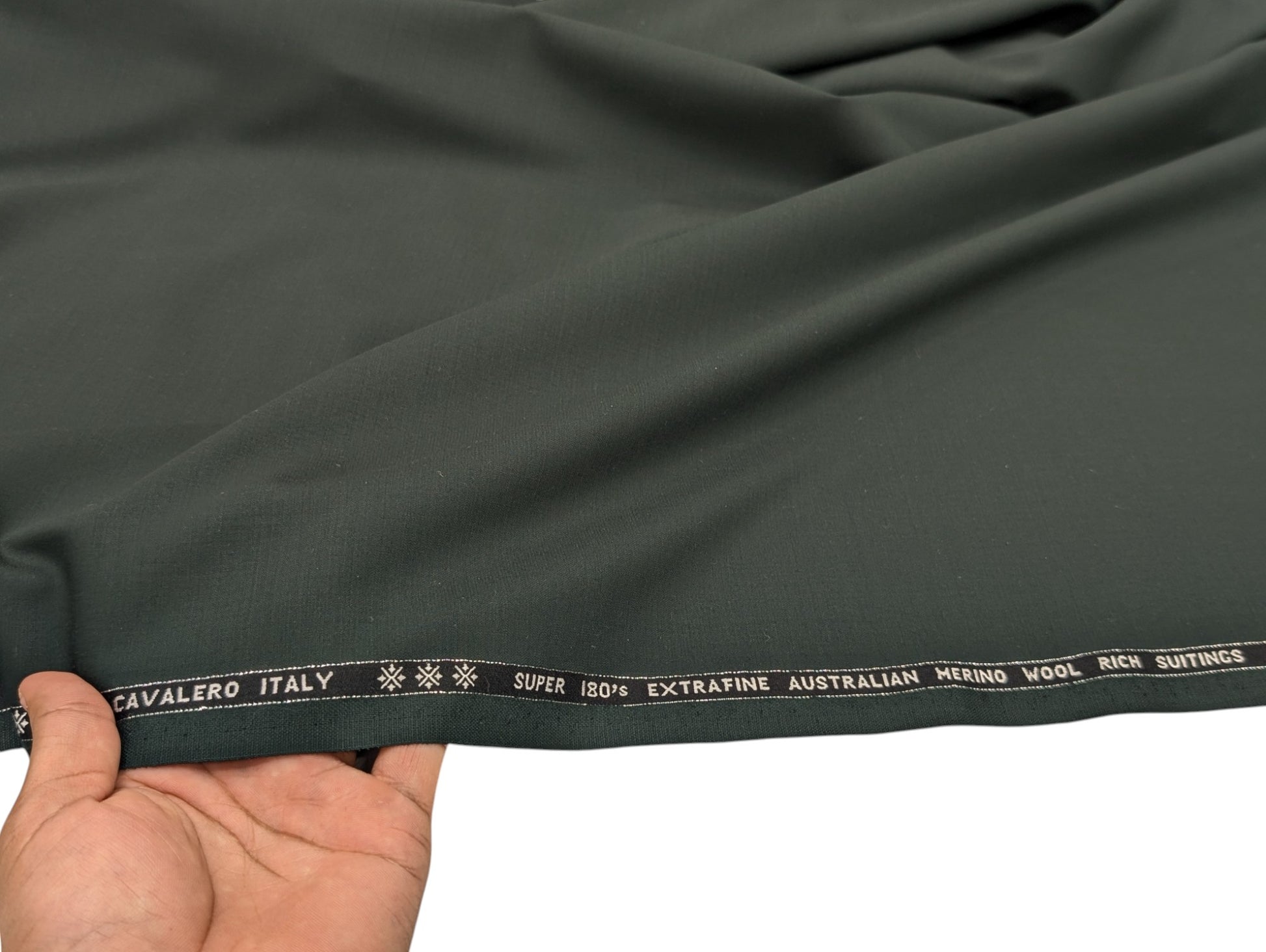 Cavalero Italy 95% Wool Super 180’s Extrafine Australian Merino Wool Unstitched Suiting Fabric (Rich Bottle Green)