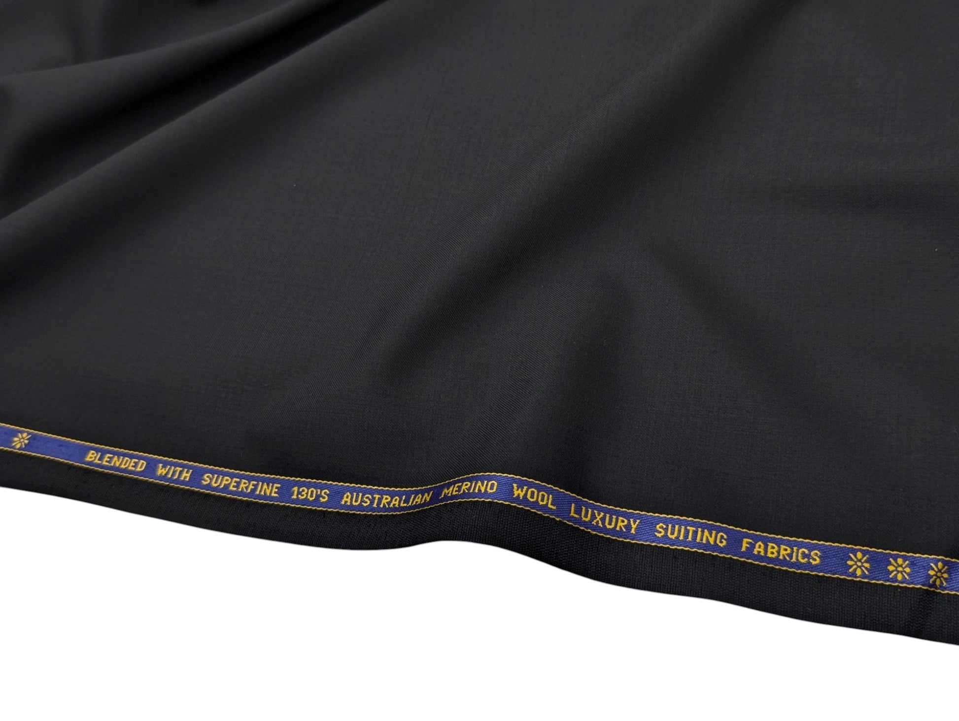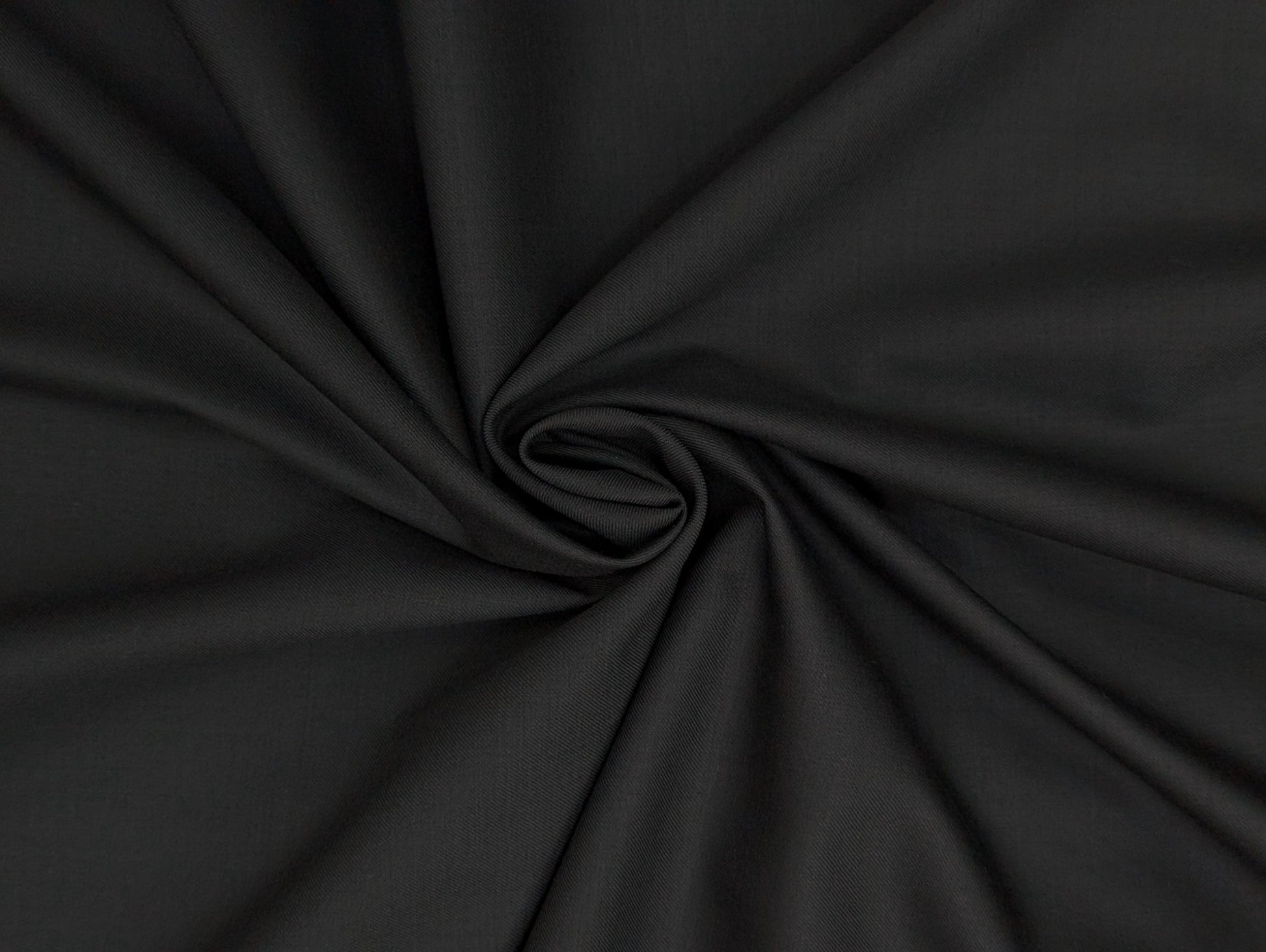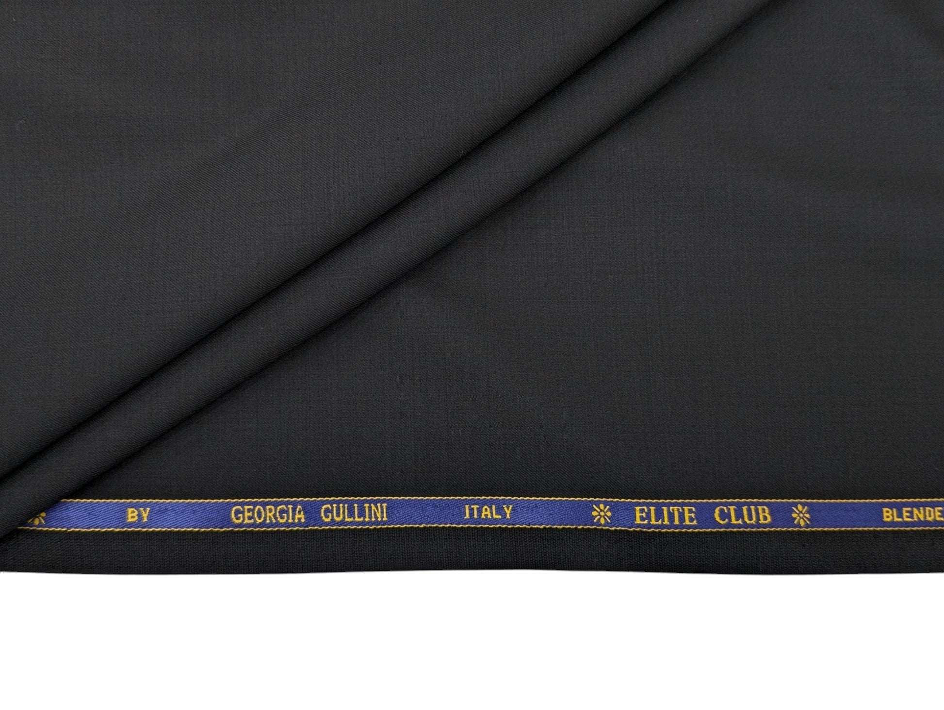 Georgia Gullini Super 130's Merino Wool Blend Suiting Fabric (Luxurious Black, Smooth Plain Weave)