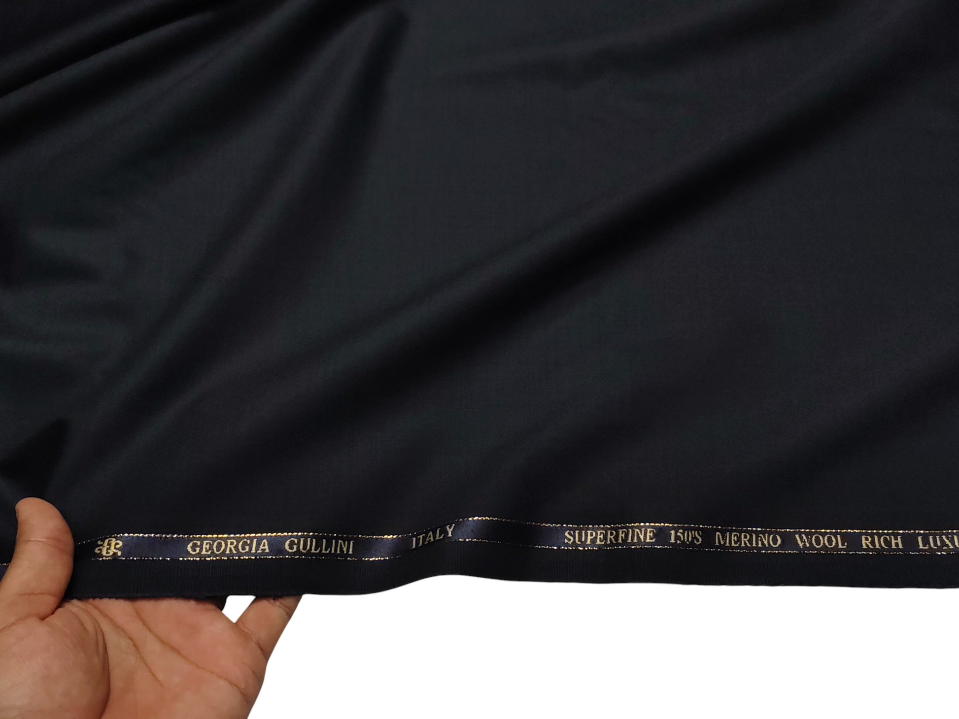 Georgia Gullini Super 150s Merino Wool Blend Suiting Fabric (Navy Blue, Plain Weave)