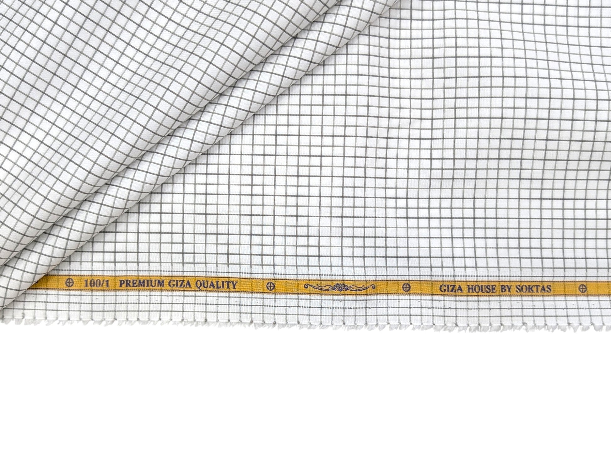 Giza House by Soktas 100/1 Premium Giza Cotton Shirting Fabric (White & Brown Checks)
