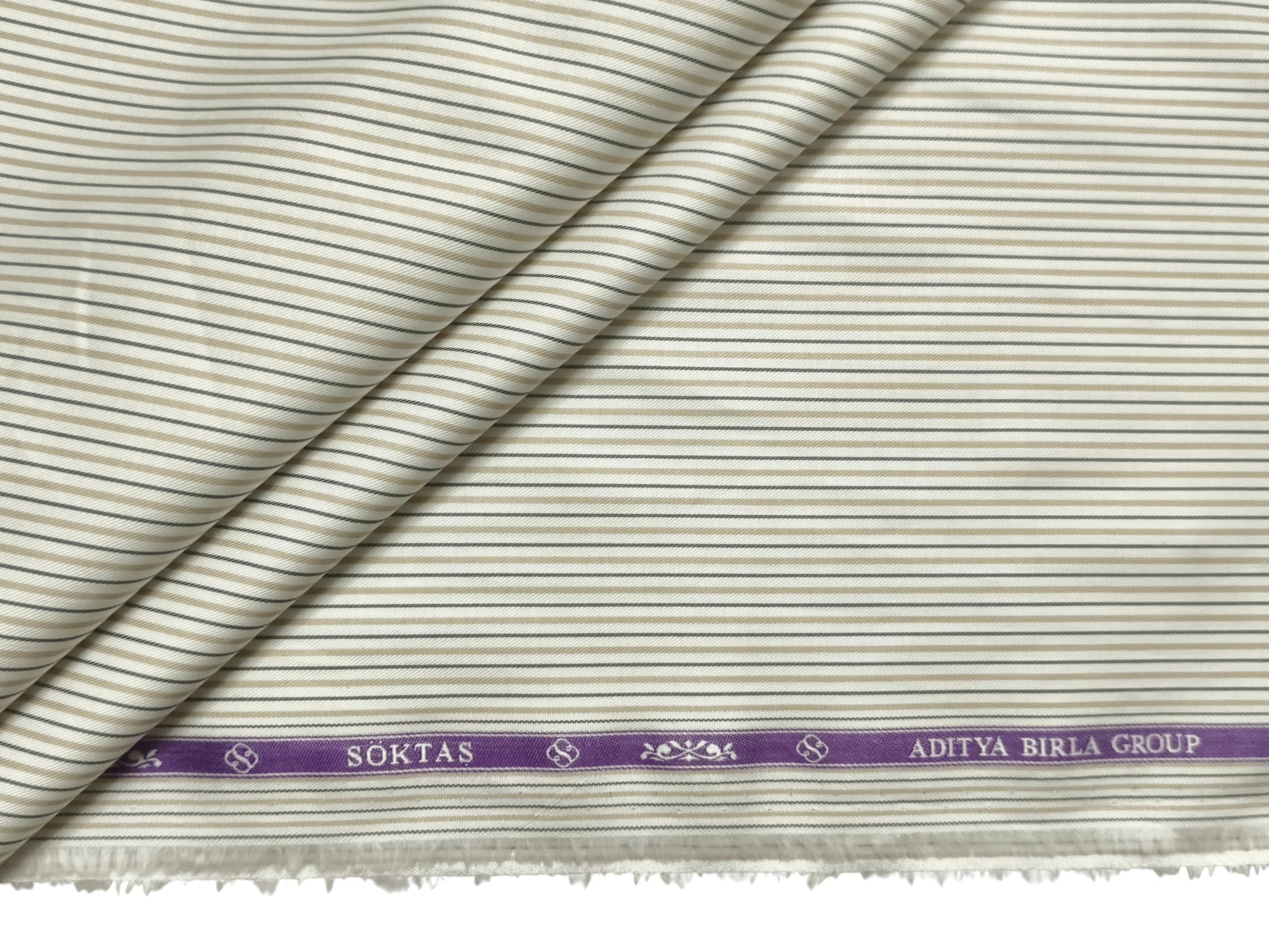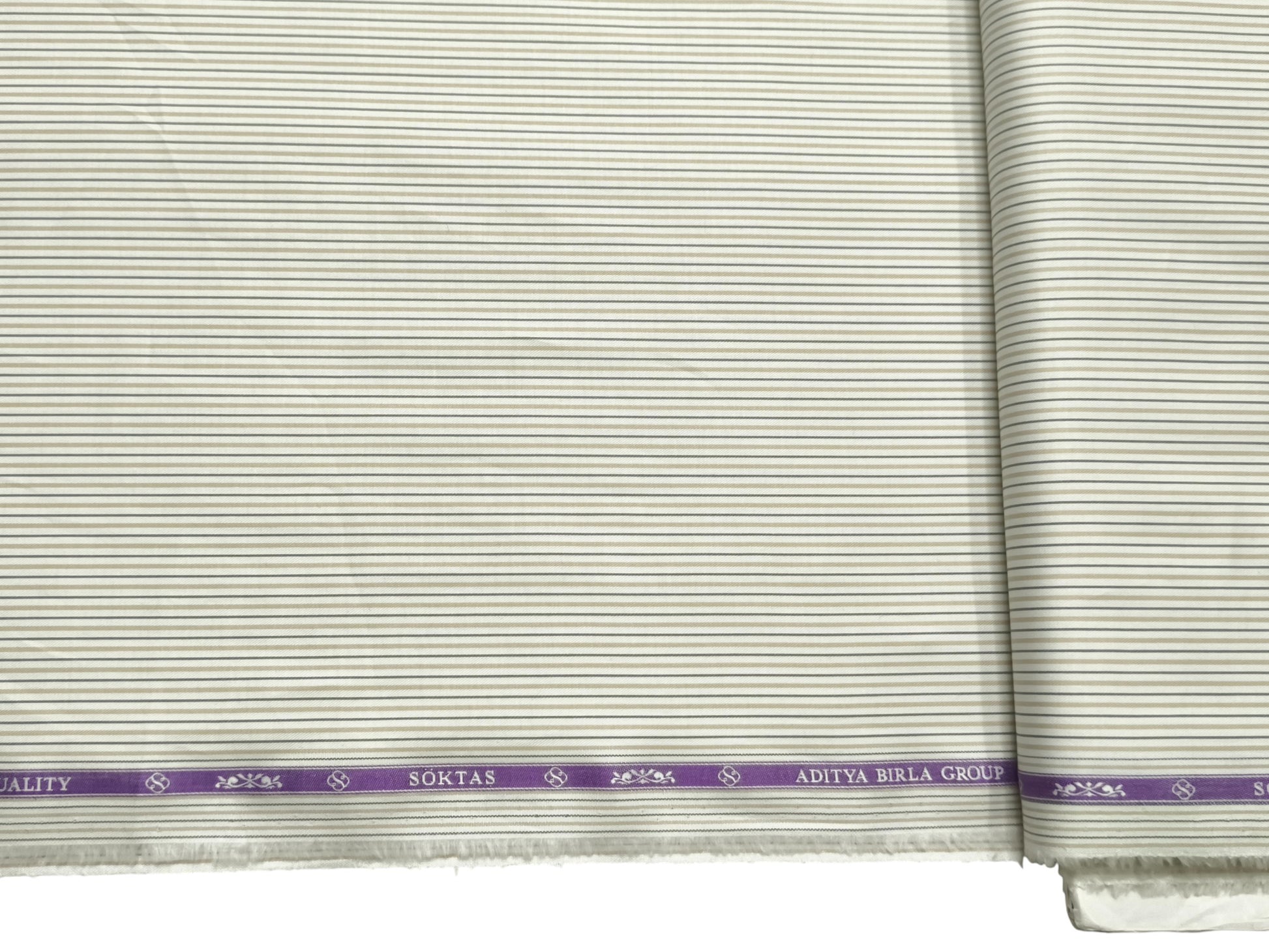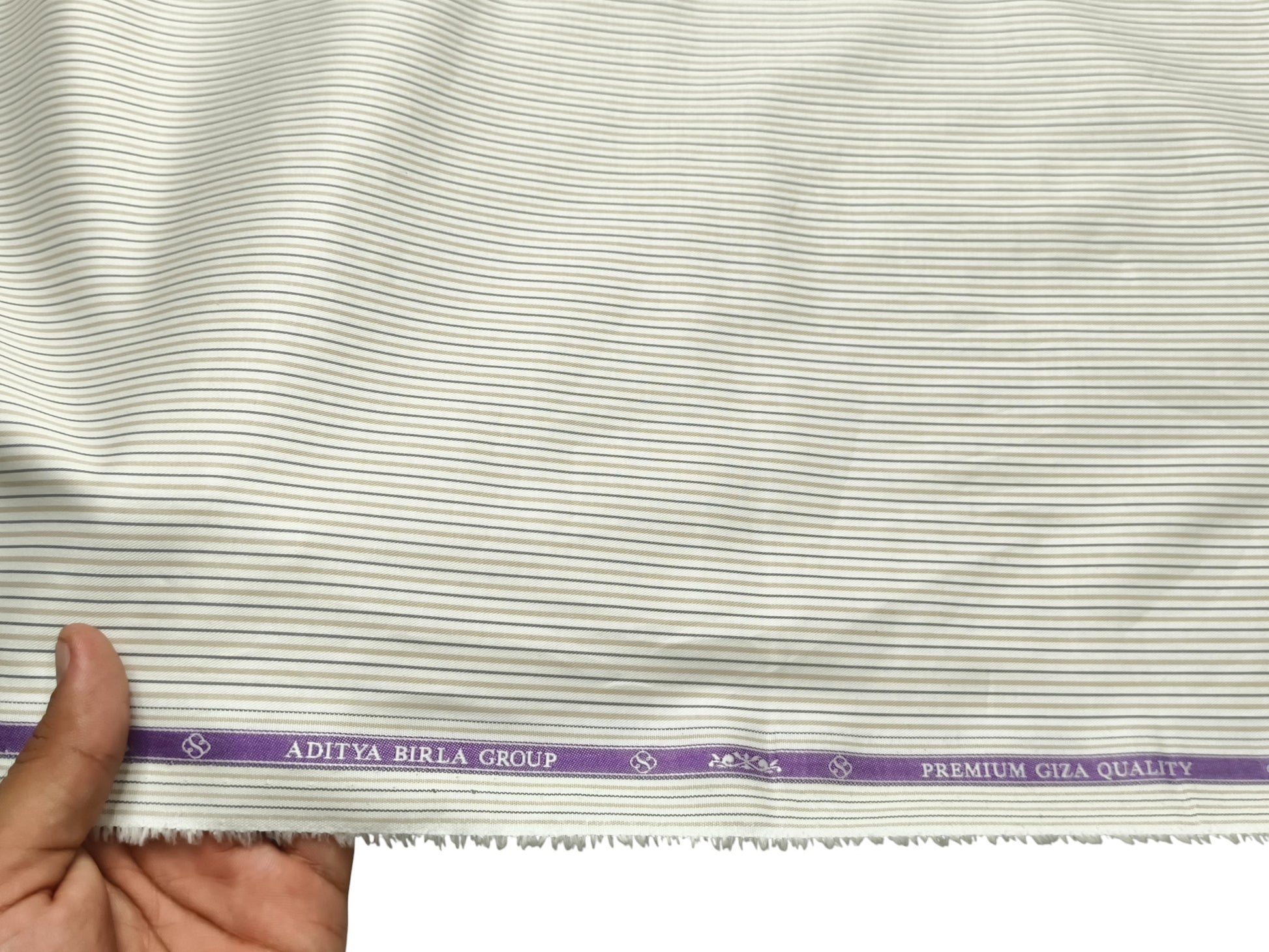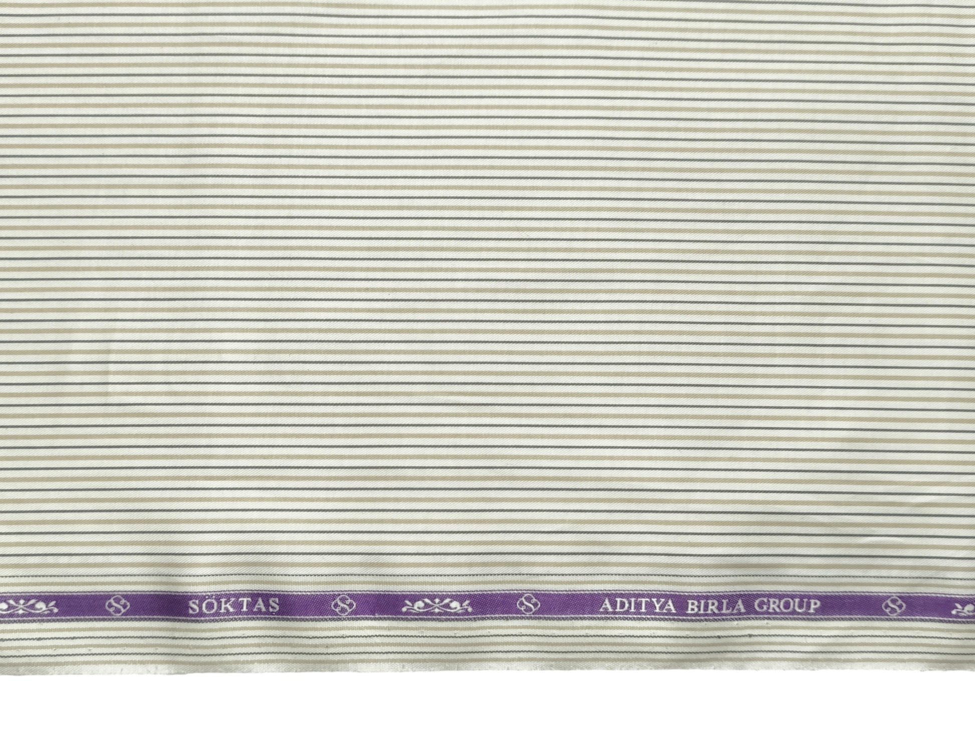 Giza House By Soktas 100% Premium Giza Cotton Shirting Fabric (White Yellow & Grey Stripes)