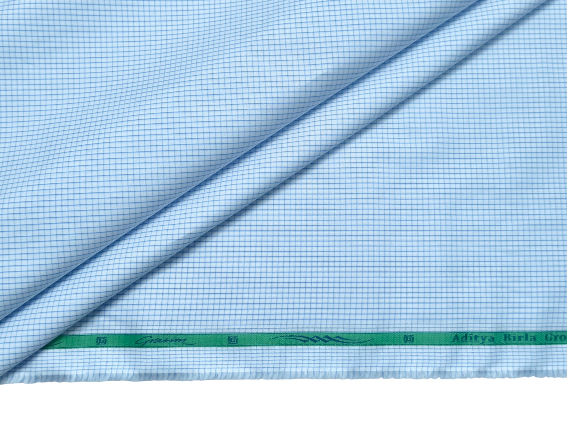 Grasim by Aditya Birla Group 100% Pure Cotton Shirting Fabric (Blue , Microchecks)