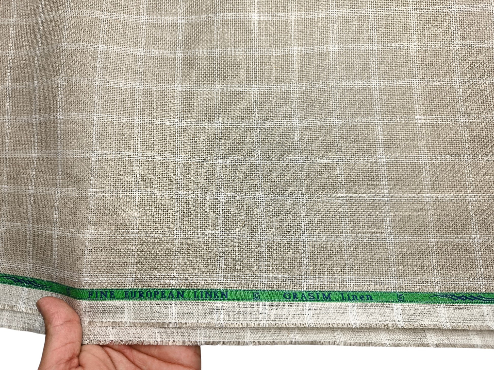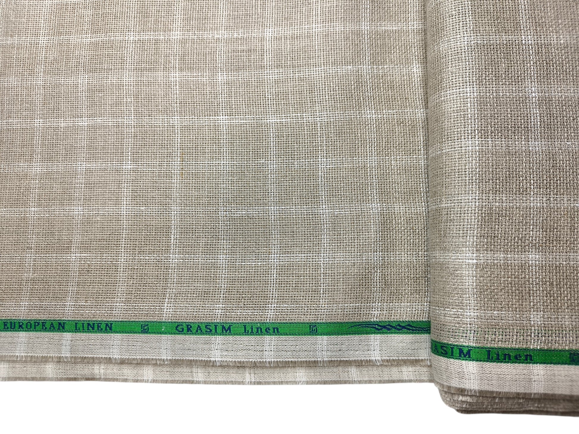 Grasim By Aditya Birla Group 100% Pure Linen Premium Shirting Fabric (Warm Beige Checks , Jute Weave)