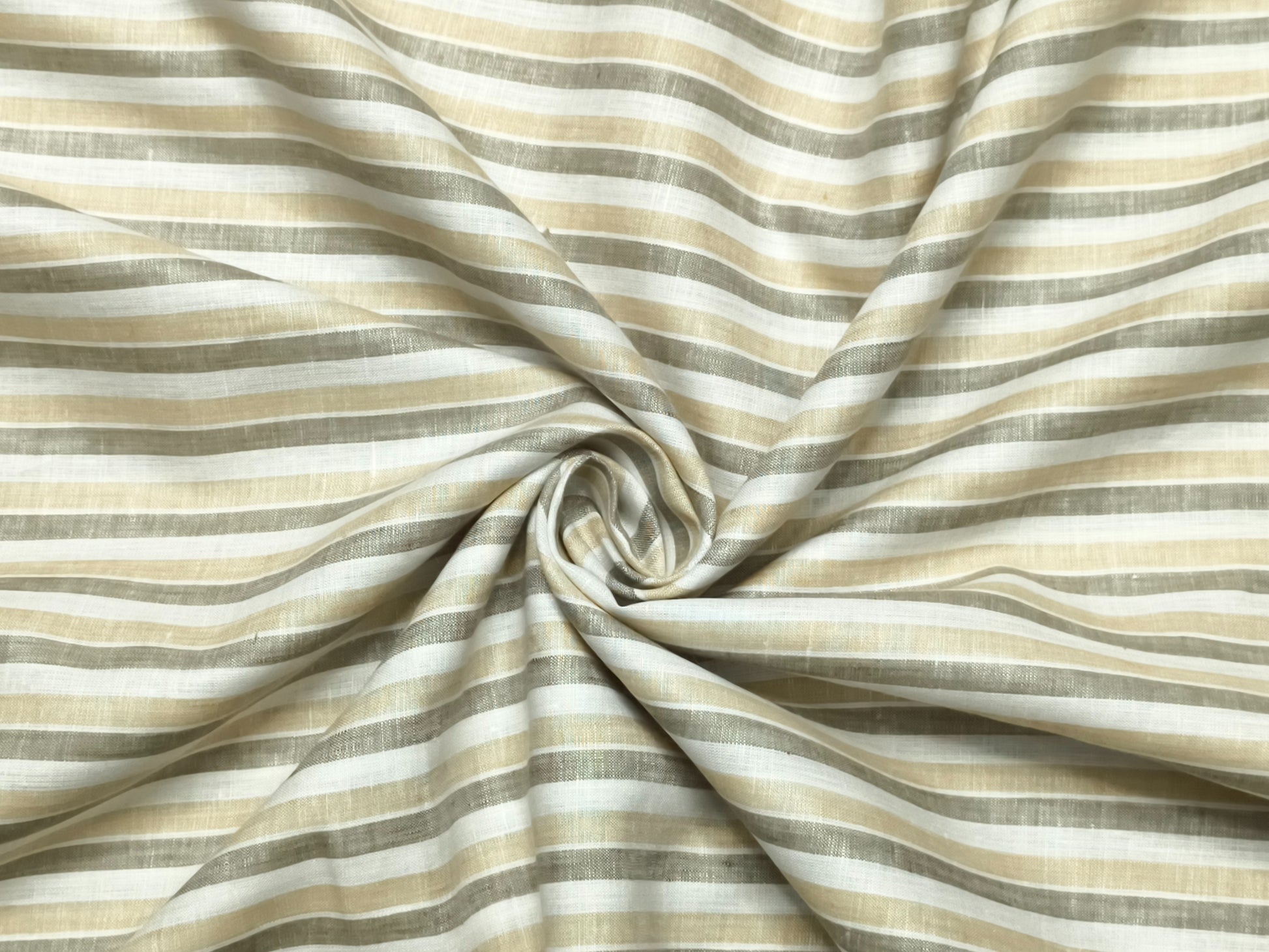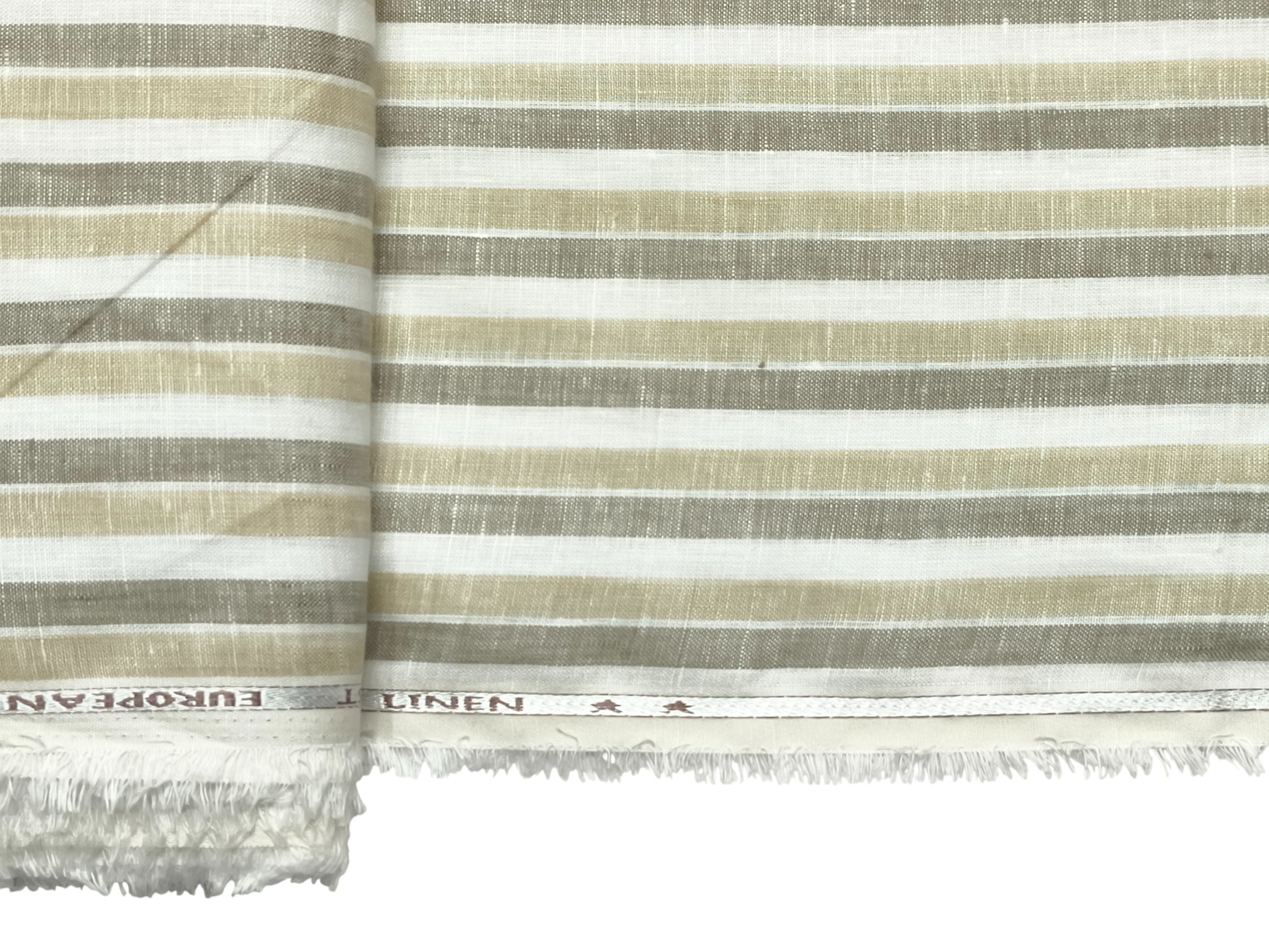 Italian Luxury Collection 100% Pure Linen 70 Lea Shirting Fabric (Beige & Olive, Stripes)