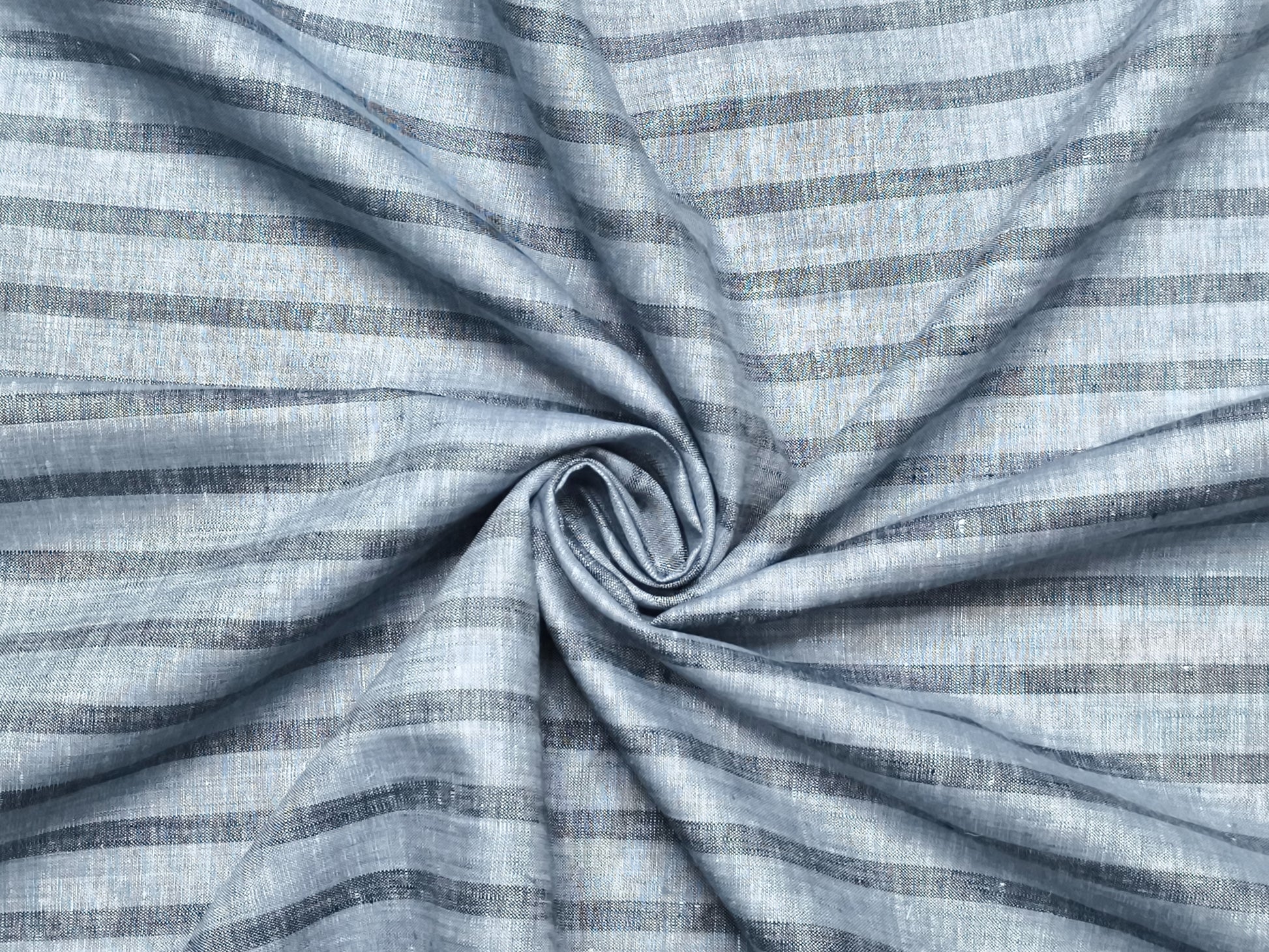 Italian Luxury Collection 100% Pure Linen 70 Lea Shirting Fabric (Blueish Grey , Stripes)