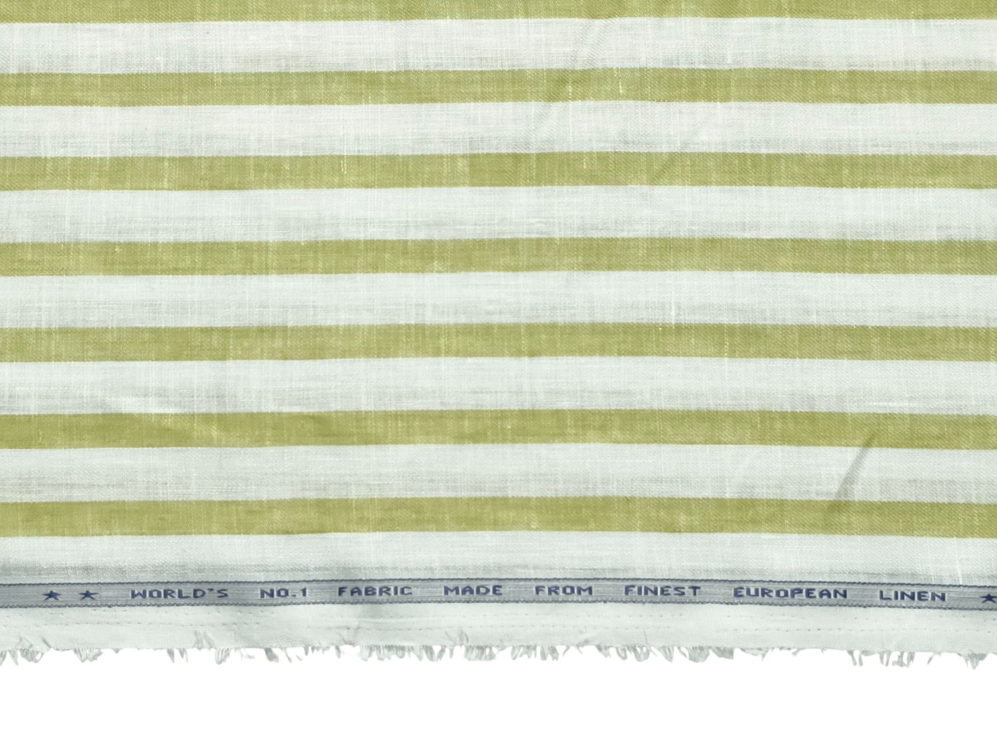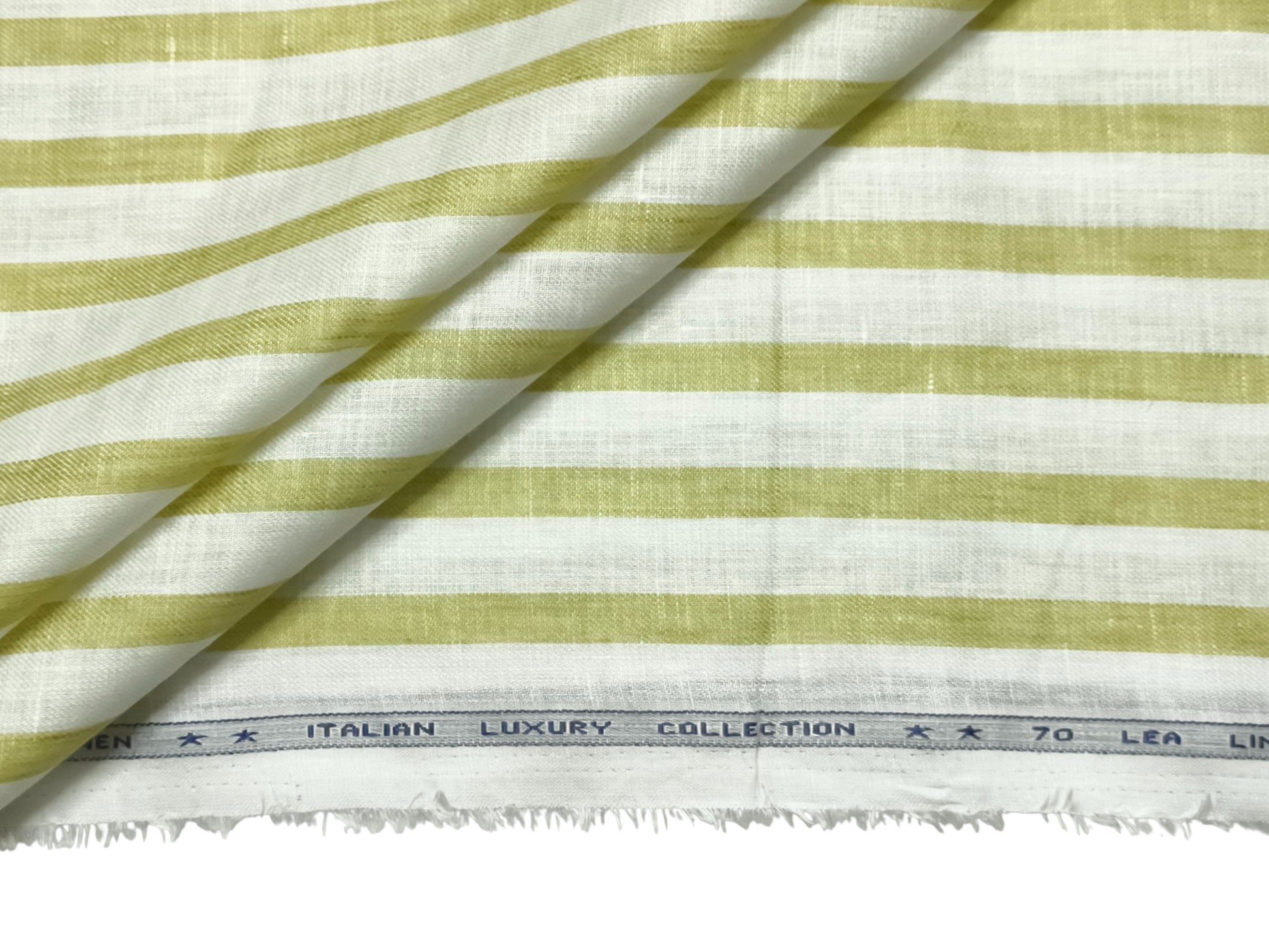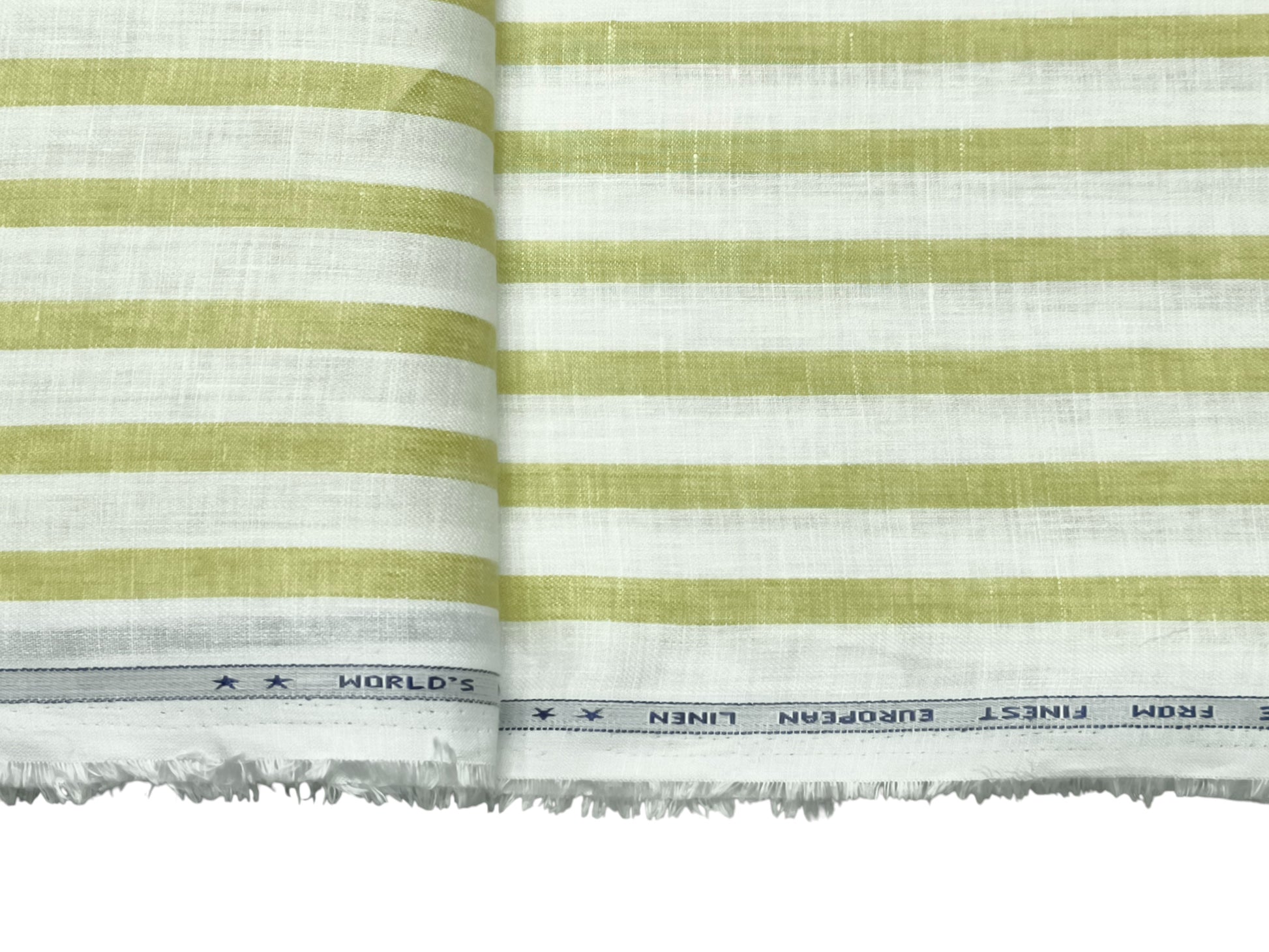 Italian Luxury Collection 100% Pure Linen 70 Lea Shirting Fabric (White & Green, Stripes)