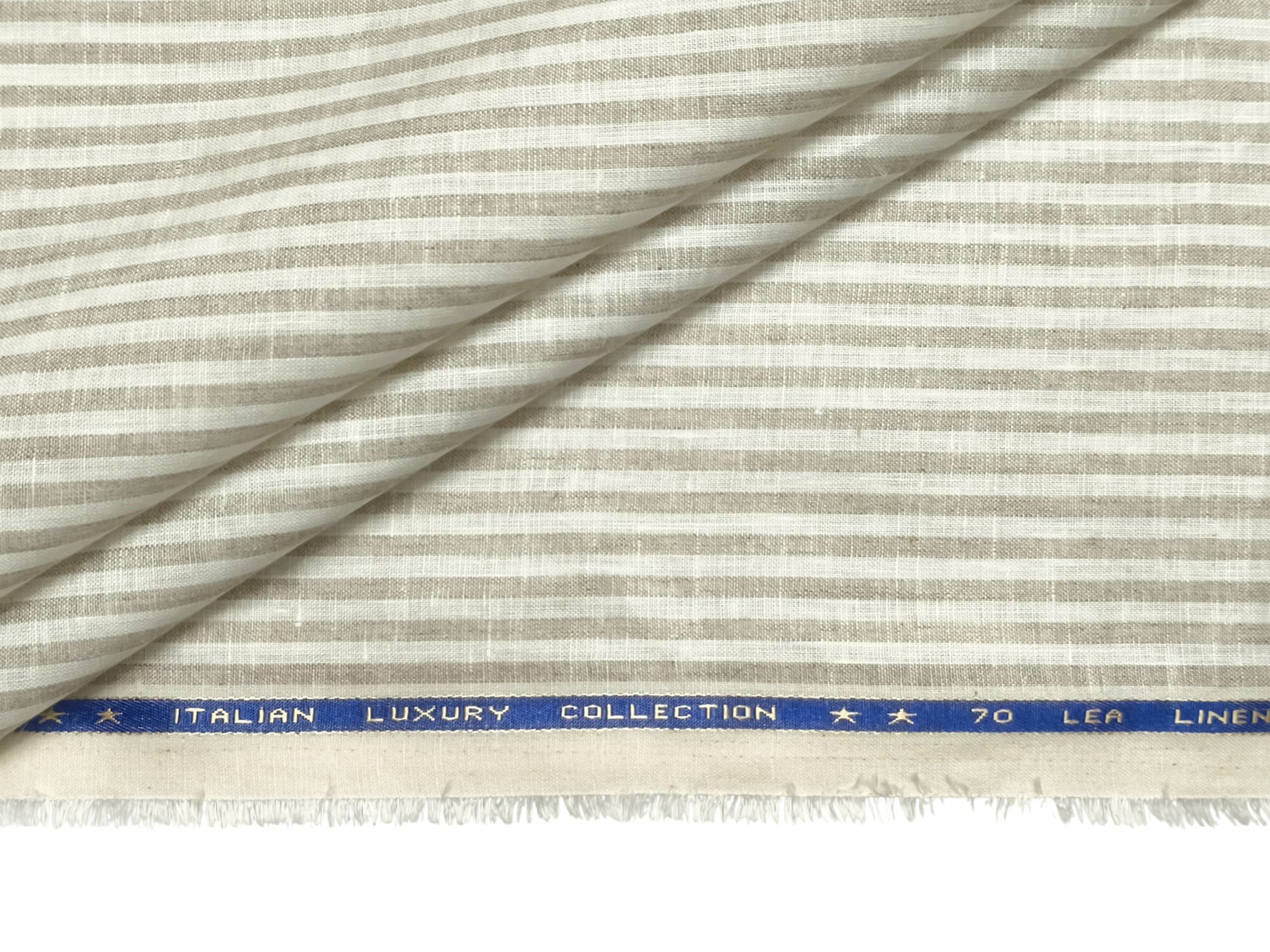 Italian Luxury Collection 100% Pure Linen Fabric 70 LEA Shirting Fabric (Beige & White, Stripes)