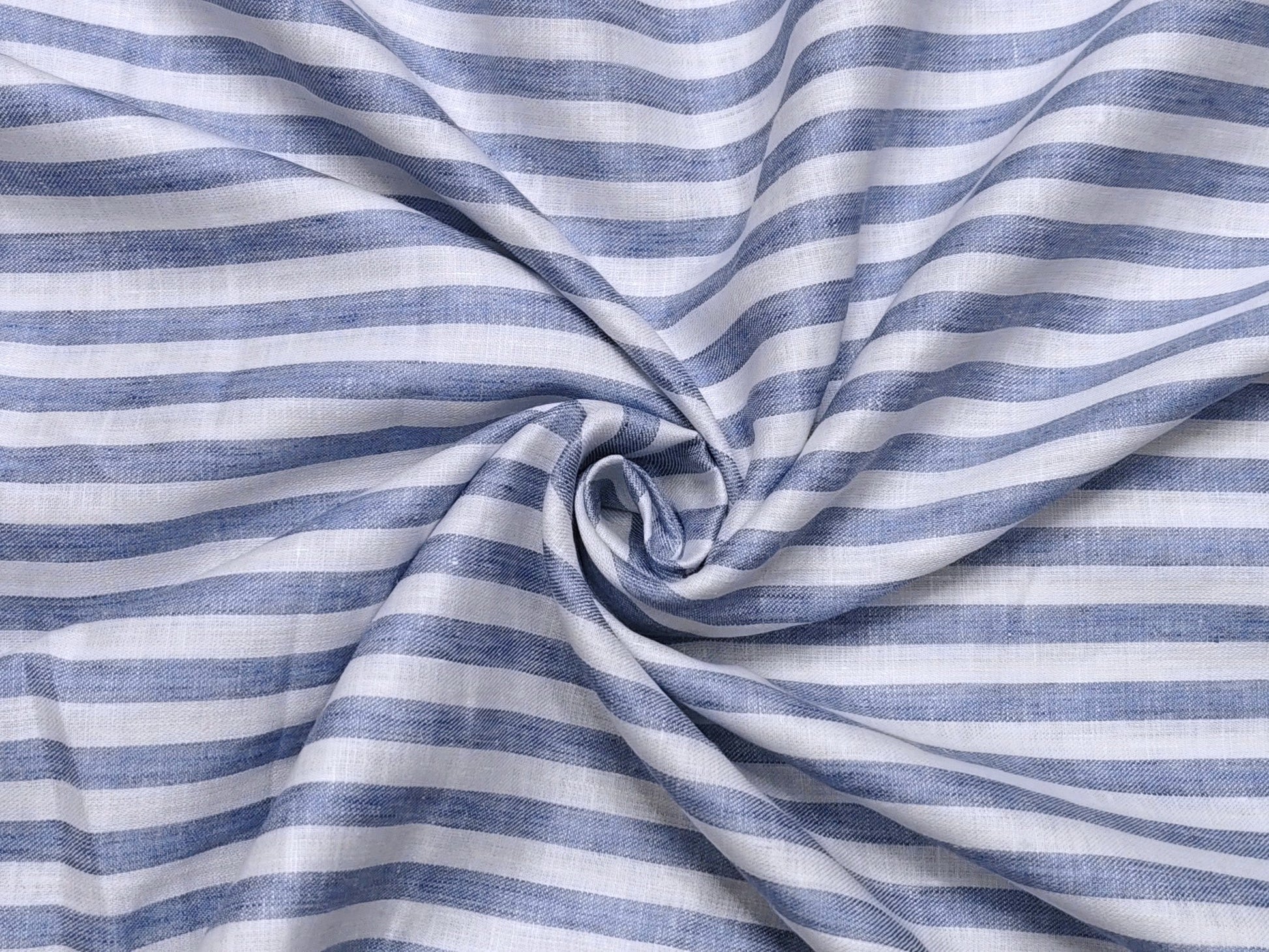 Italian Luxury Collection 100% Pure Linen Fabric 70 LEA Shirting Fabric (Blue , Striped)