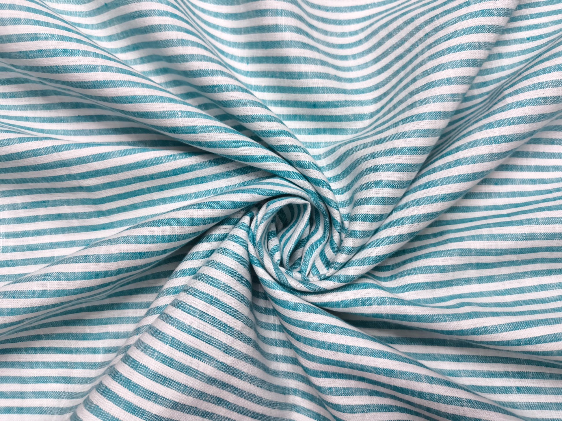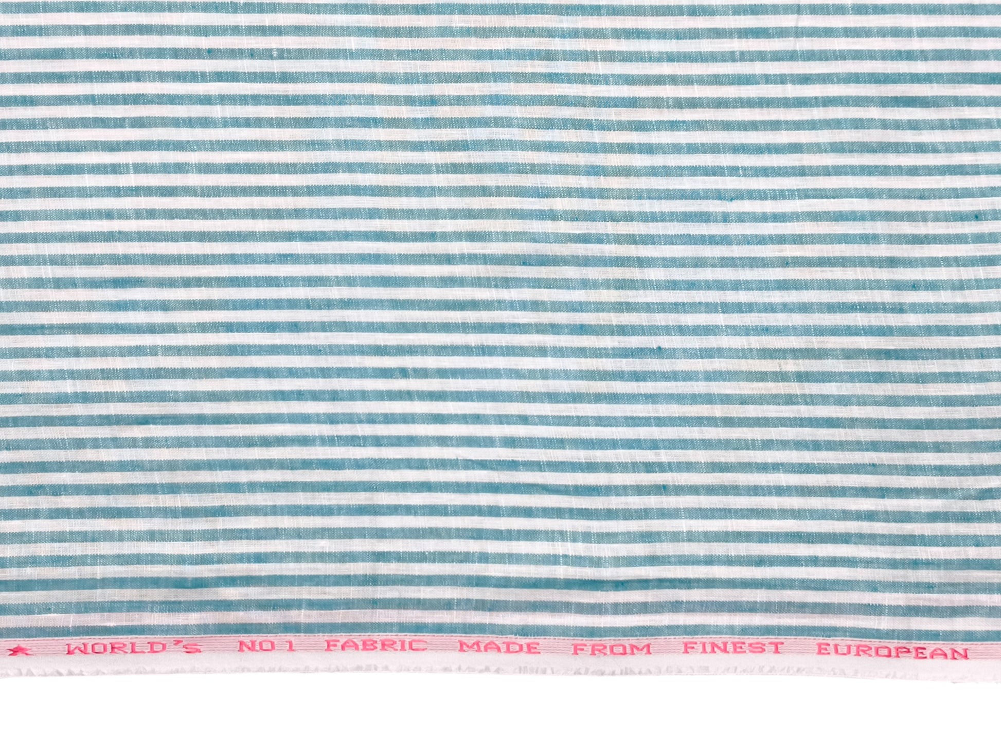Italian Luxury Collection 100% Pure Linen Fabric 70 LEA Shirting Fabric (Green & White, Stripes)