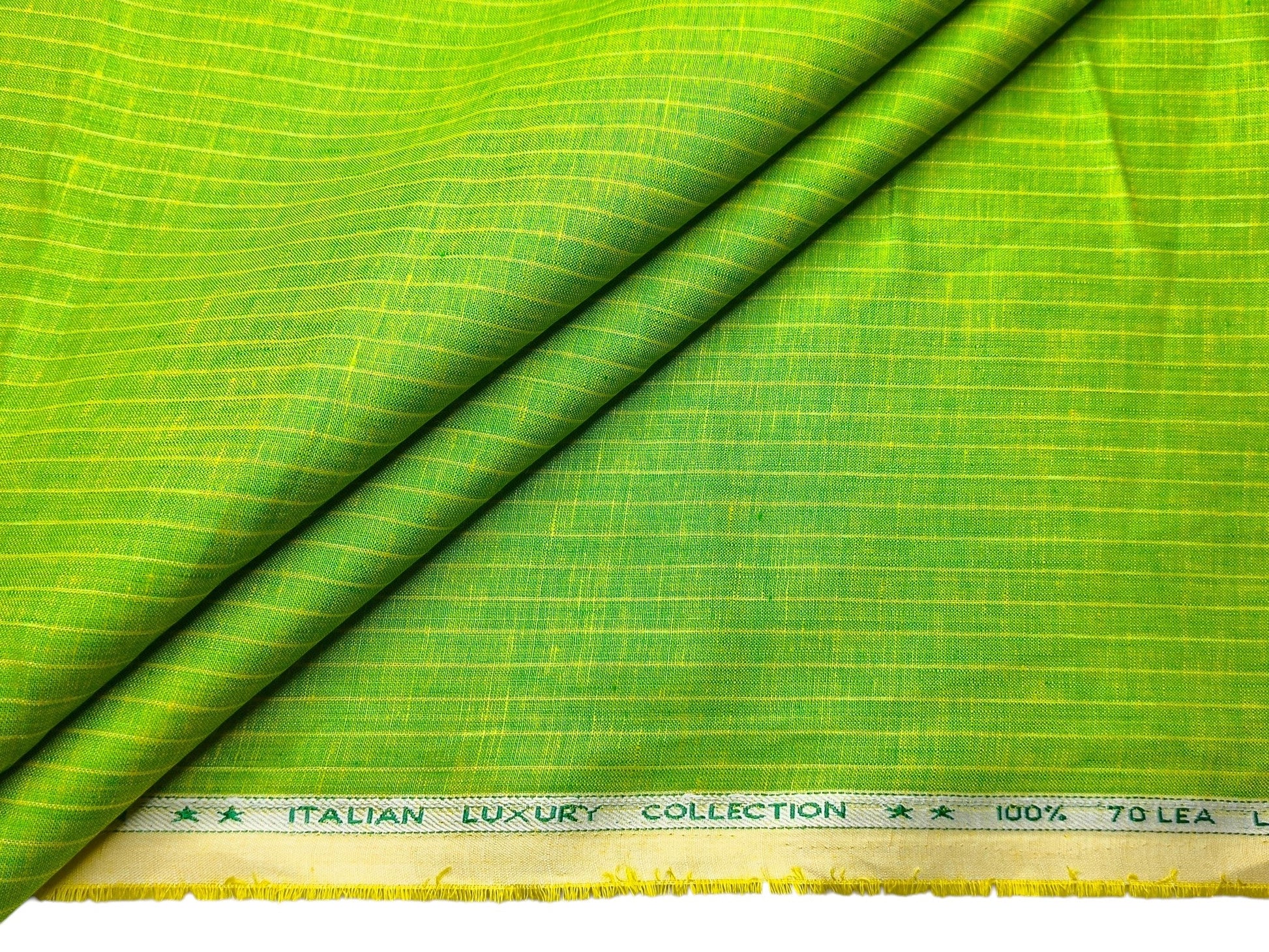 Murano Di Italia Italian Luxury Collection 100% Pure Linen 70 Lea Shirting Fabric (Parrot Green, Stripes)