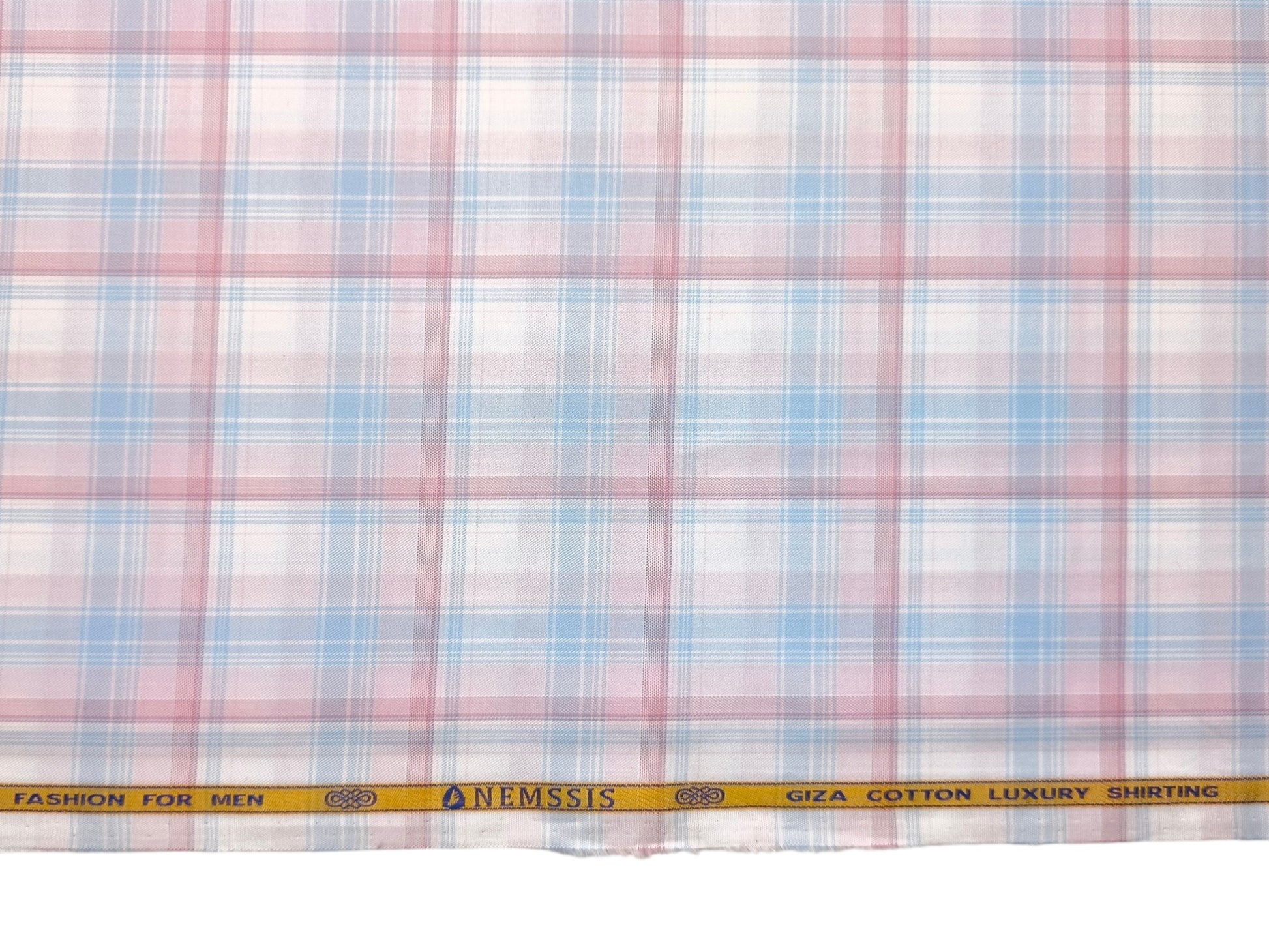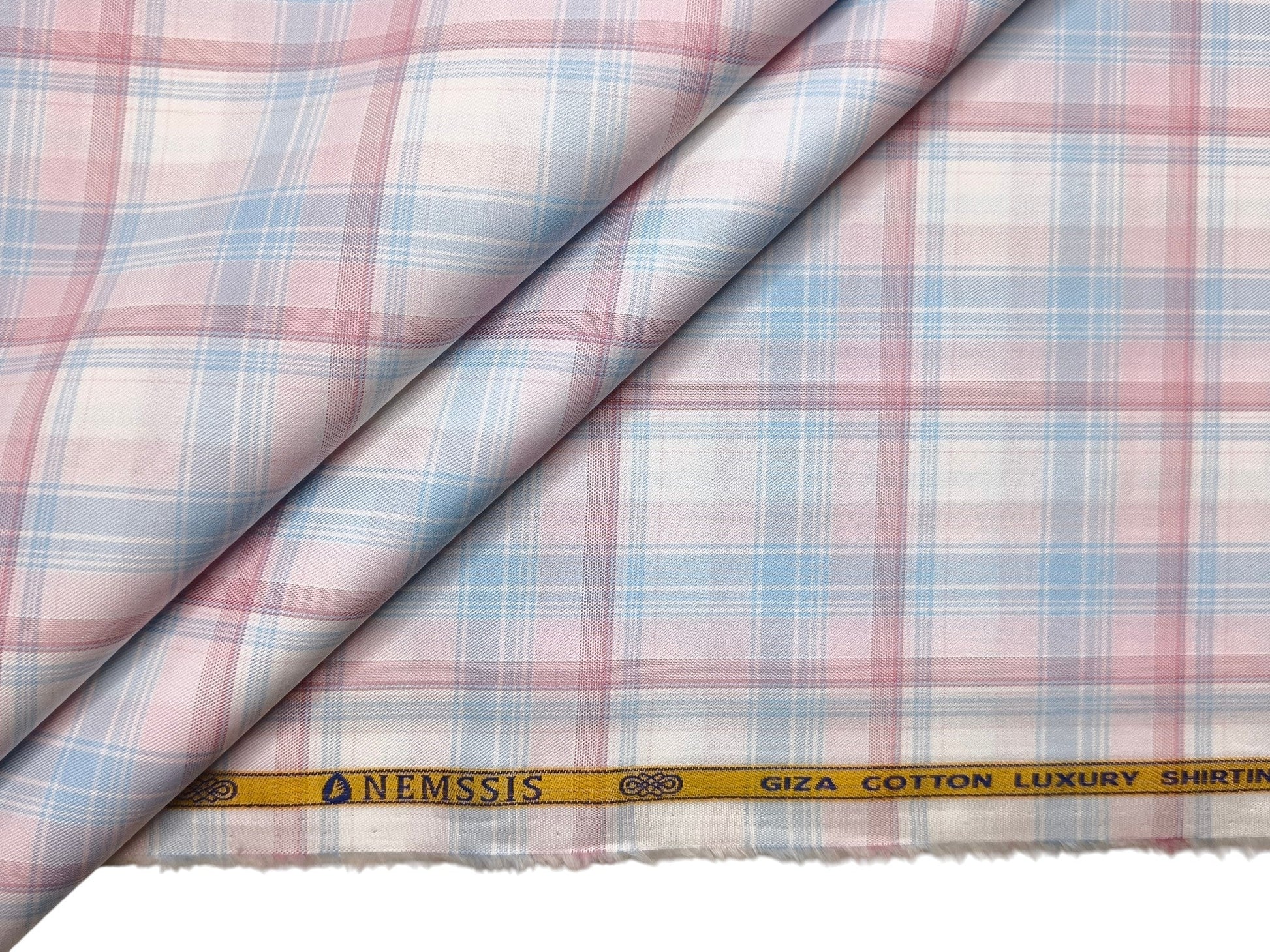 Nemssis 100% Giza Cotton Luxury Shirting Fabric (Pink & Blue , Multichecks)