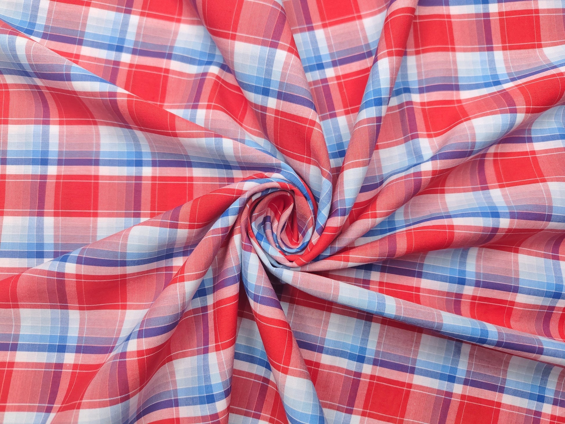 Raymond 100% Premium Cotton Shirting Fabric (Red, Multichecks)