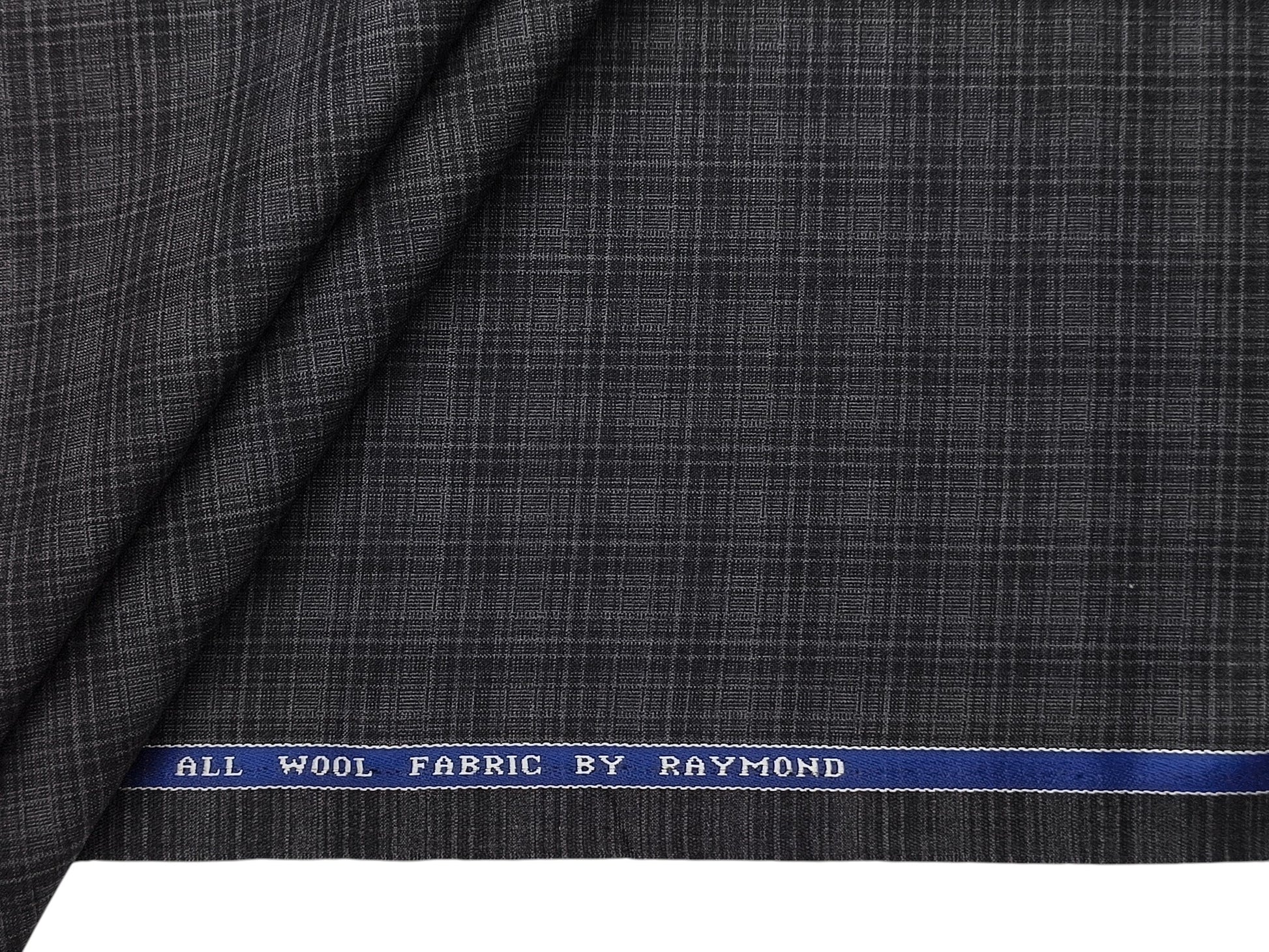 Raymond 100% Wool Premium Suiting Fabric (Grey, Checks)