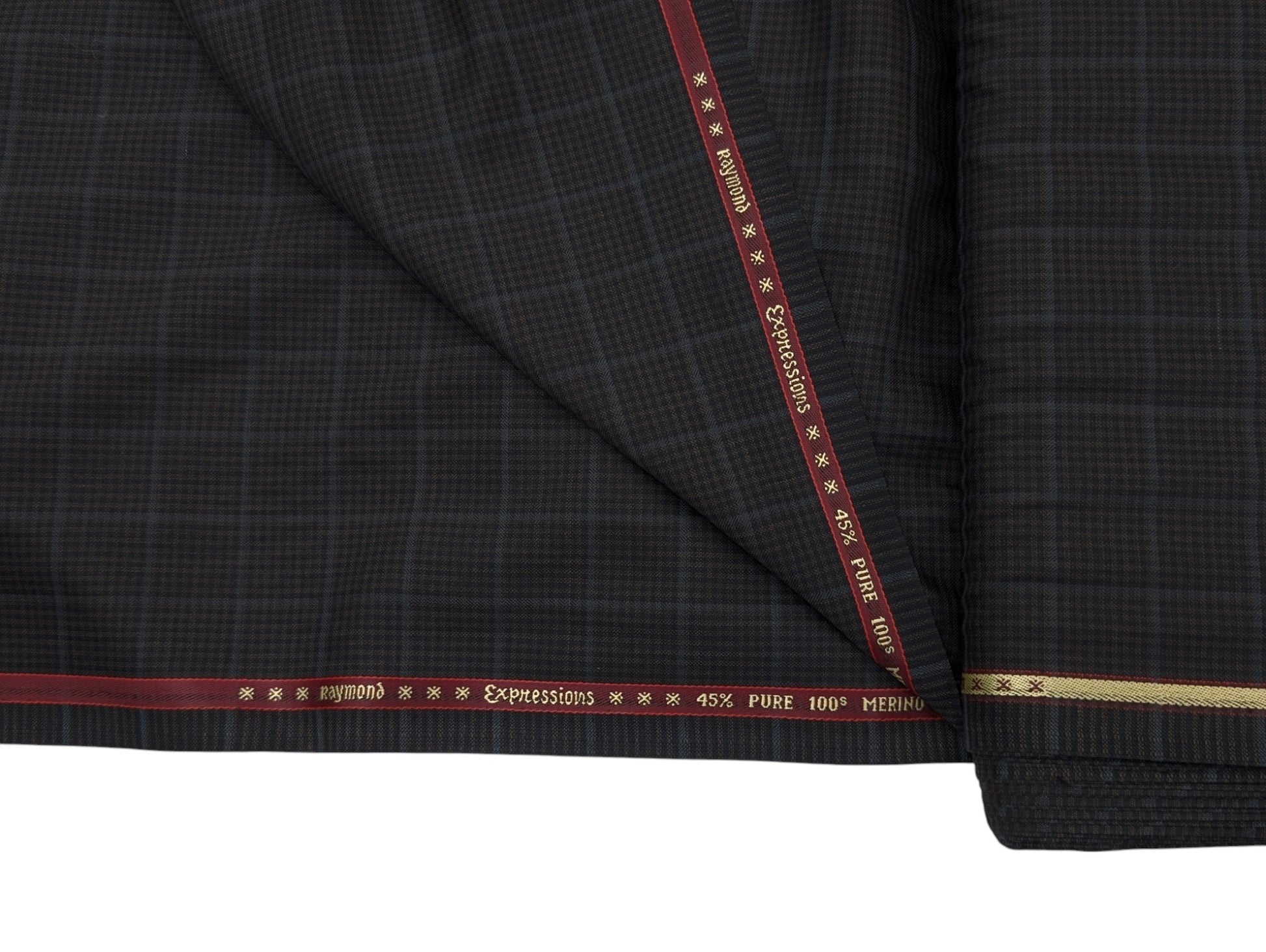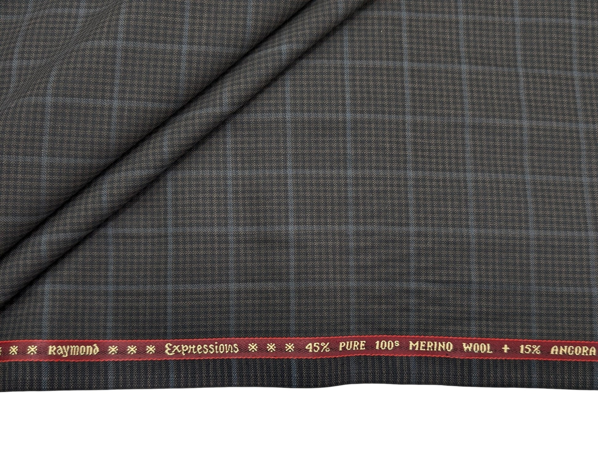 Raymond Expressions Merino Wool Blend Suiting Fabric (Dark Brown with Blue Checks)