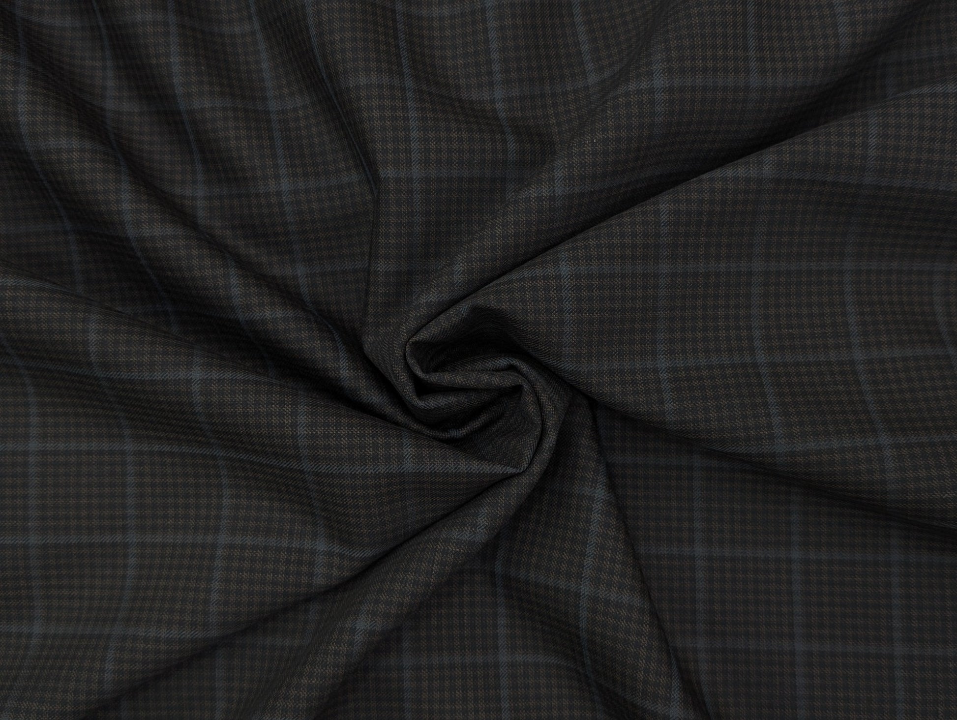 Rendered in a sophisticated dark brown with understated blue checks, it’s the perfect choice for crafting tailored suits, formal blazers, or stylish trousers that stand out for their subtle yet striking design — equally suited for boardroom meetings or evening gatherings.