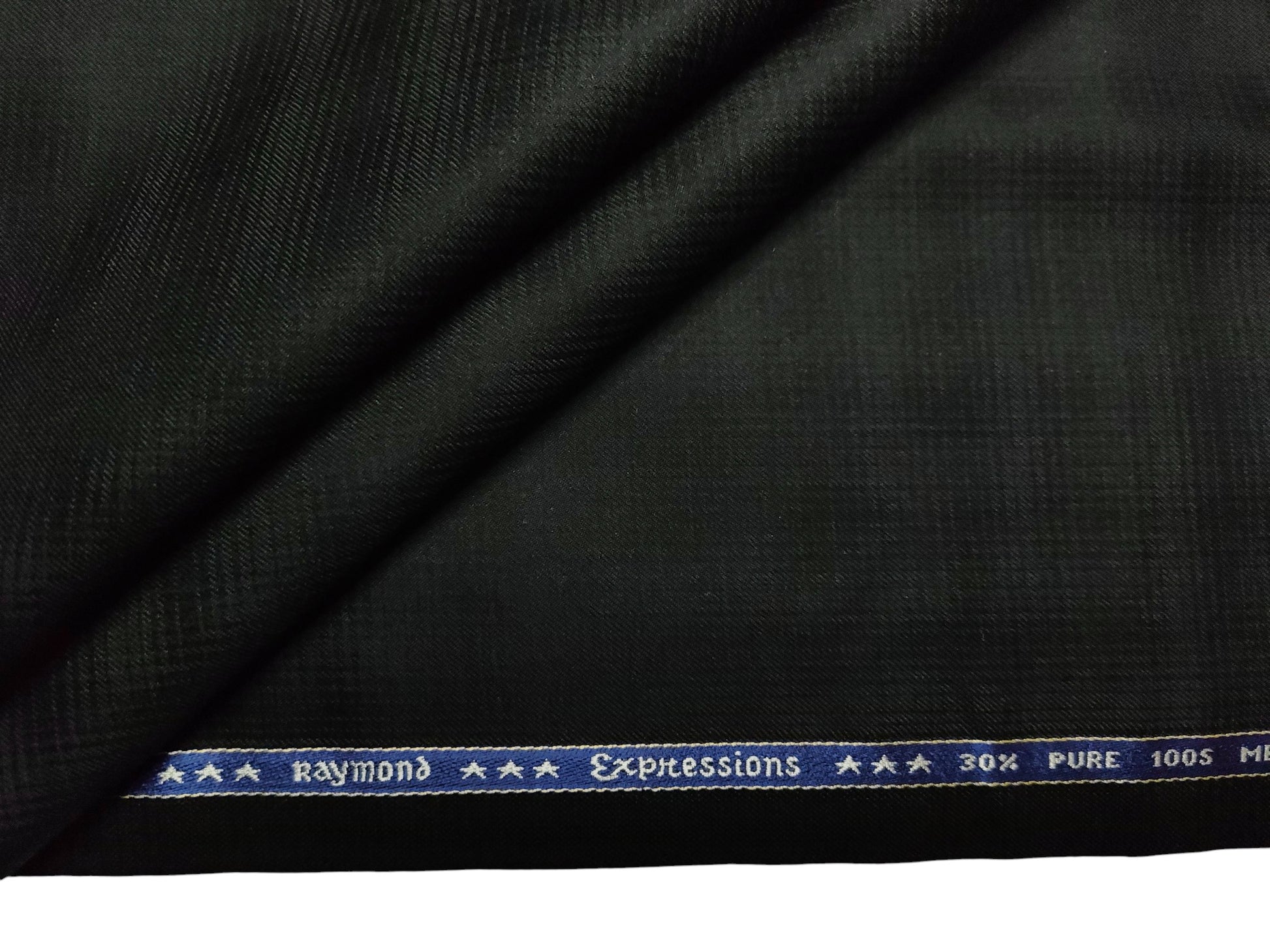 Raymond Expressions Super 100s Merino Wool Blend Suiting Fabric (Black, Patterned)
