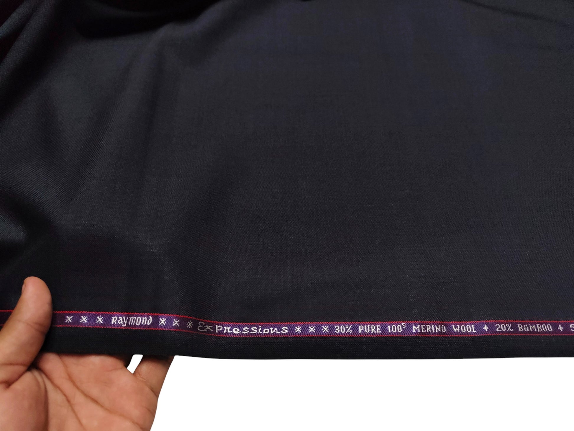 Raymond Expressions Super 100s Merino Wool Blend Suiting Fabric (Navy Blue, Plain Weave)