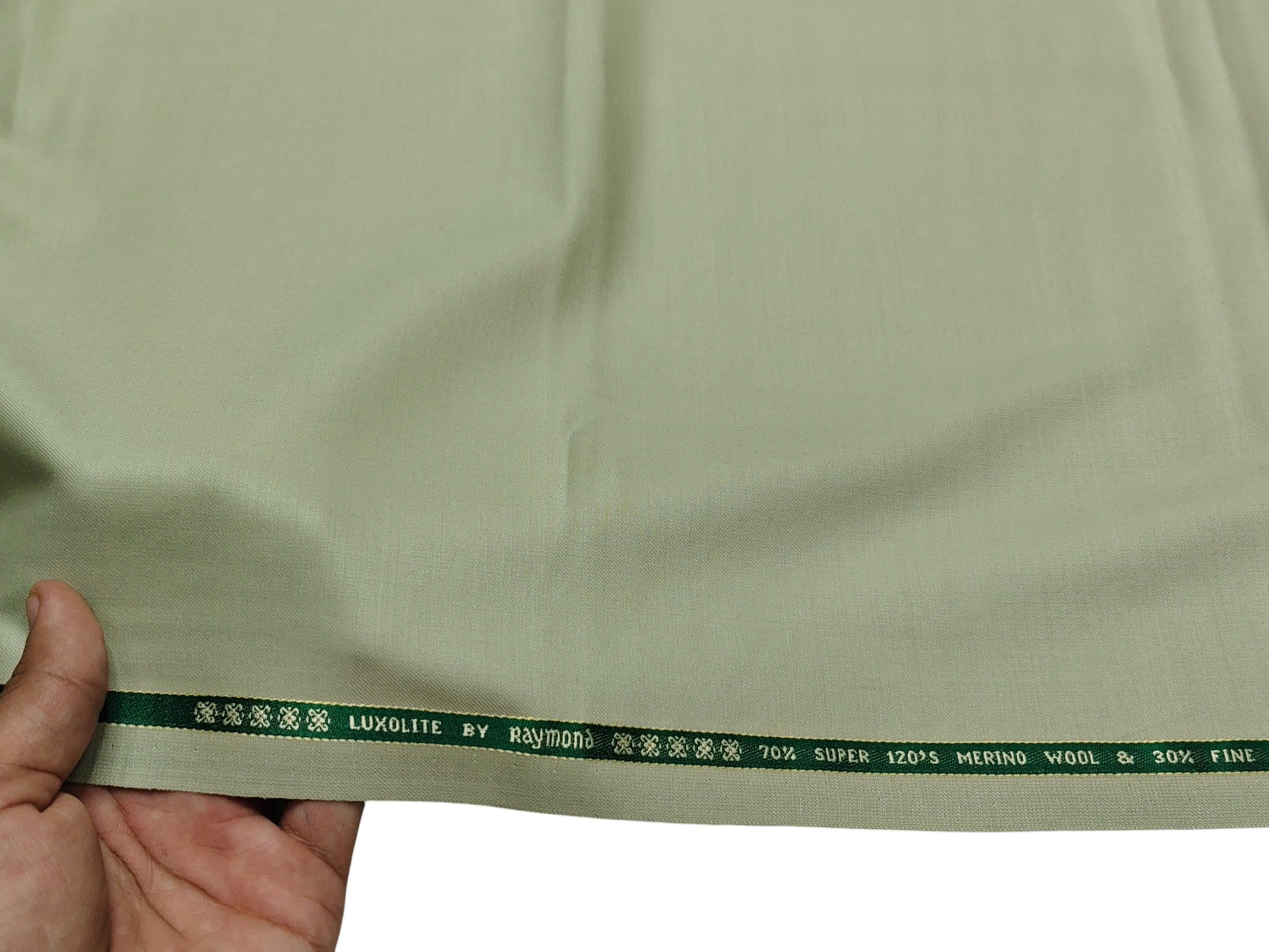Raymond Luxolite 70% Wool Super 120s Suiting Fabric (Light Green, Plain Weave)