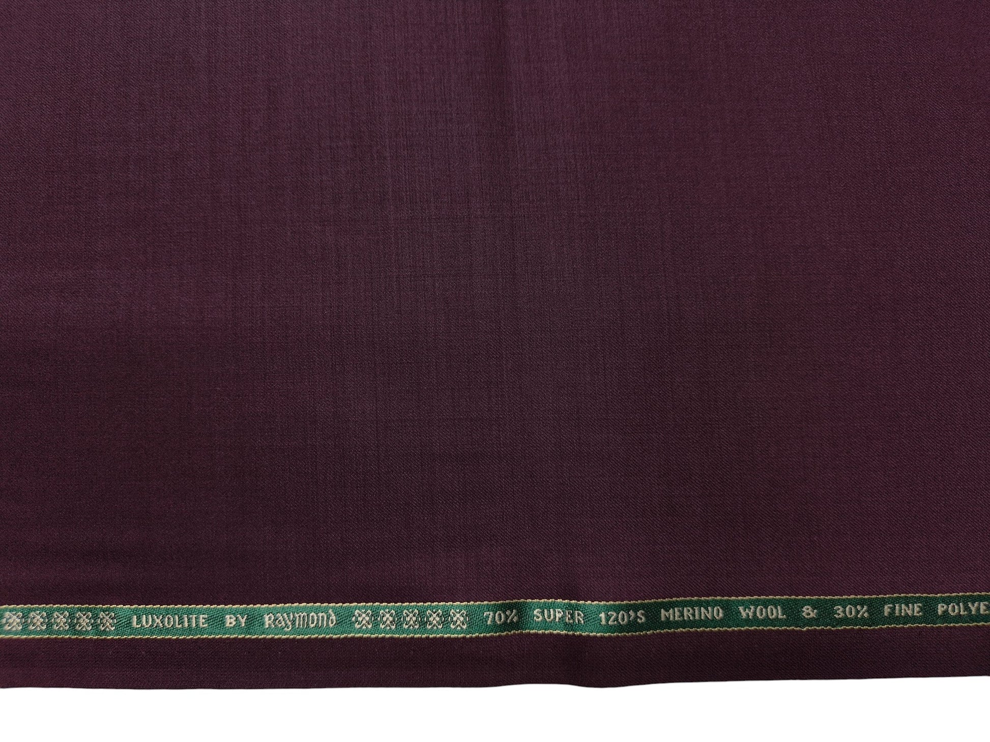 Raymond Luxolite 70% Wool Super 120s Suiting Fabric (Maroon, Plain Weave)