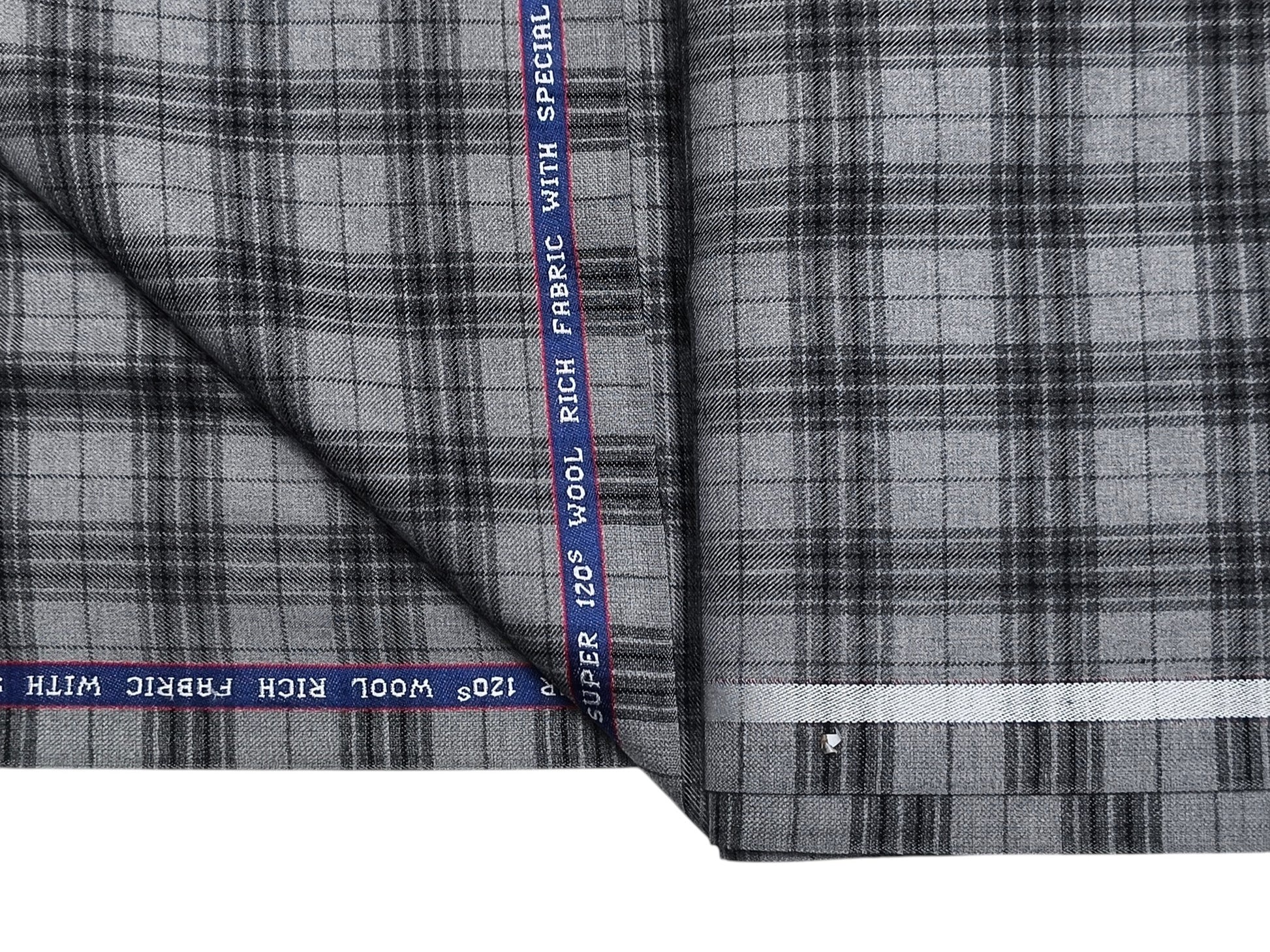 Raymond Millenza 60% Wool Super 120s Premium Suiting Fabric (Grey, Checks)