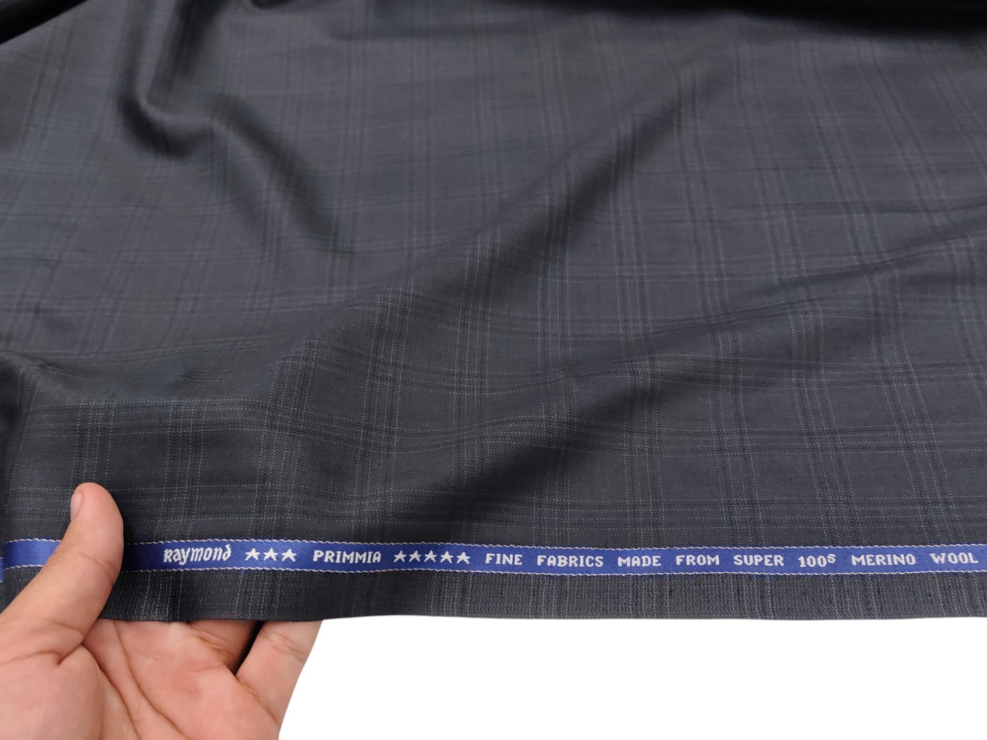 Raymond Primmia Super 100's Suiting Fabric (Gray, Checks)