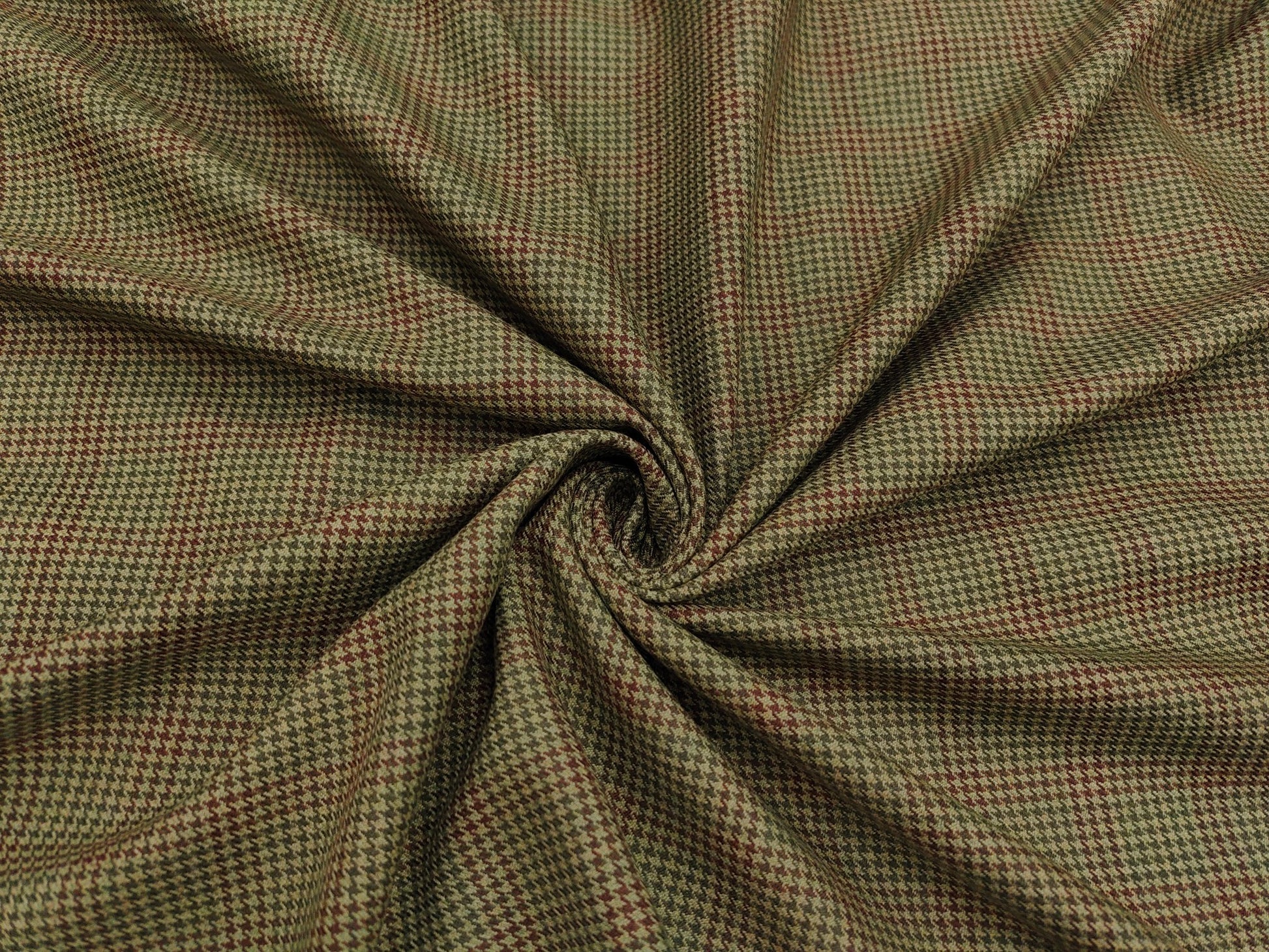 Raymond Rosette Wool Blended Jacketing Suiting Fabric (Green And Red, Houndstooth Pattern)