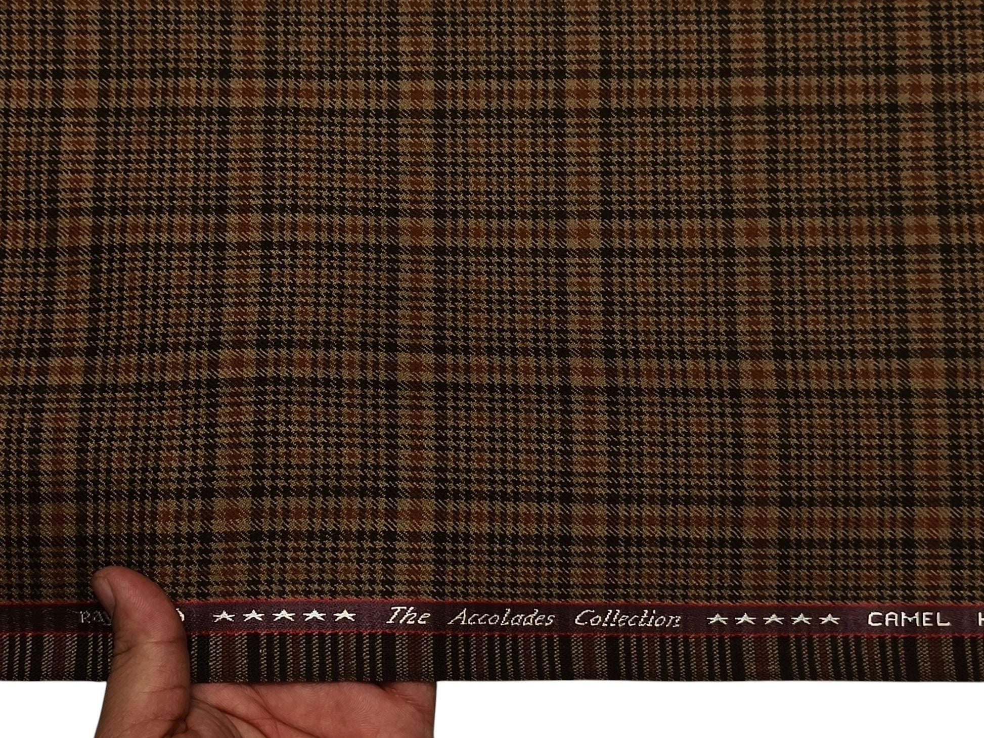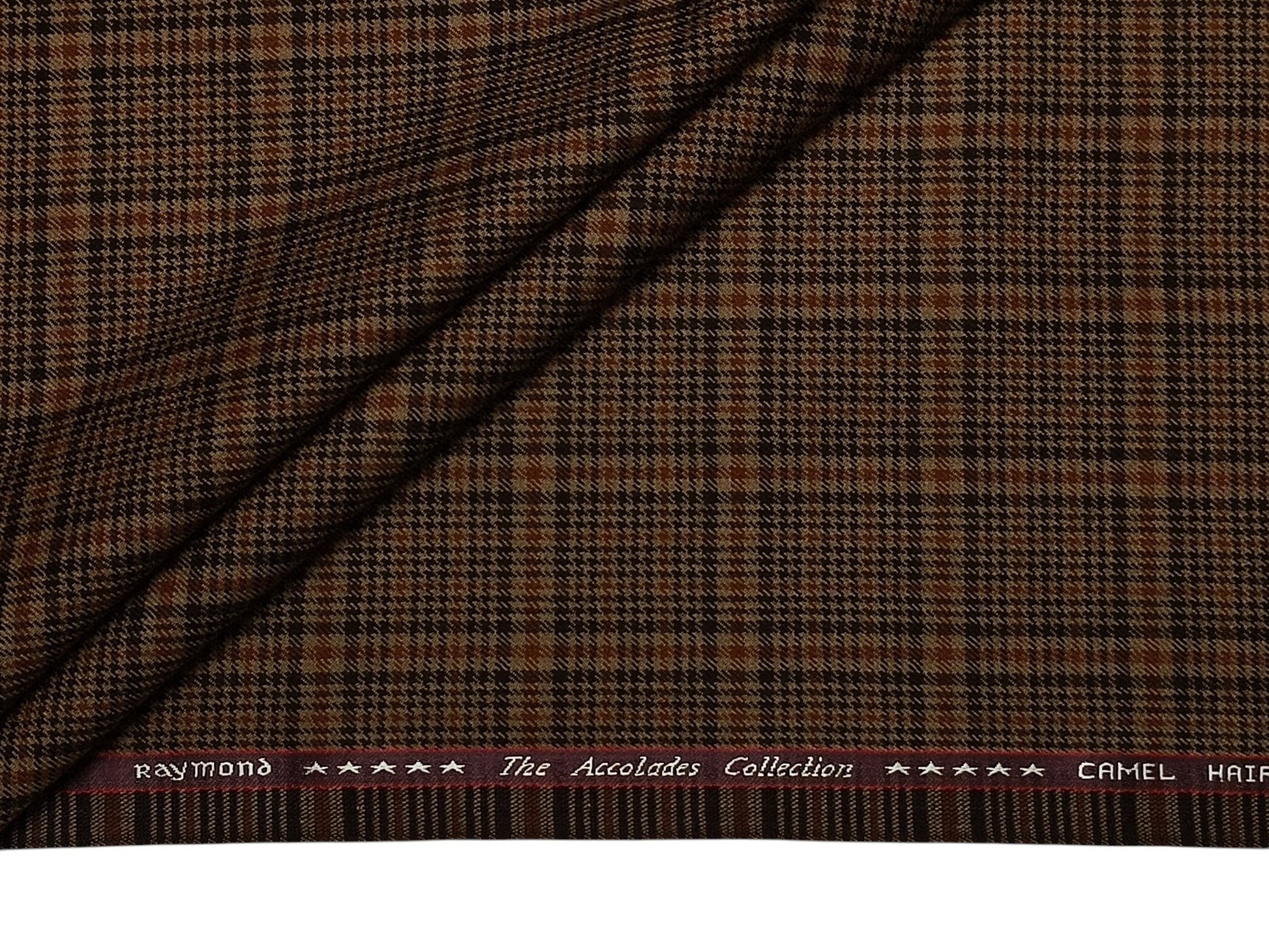 Raymond The Accolades Collection 90% Wool 10% Camel Hair Super 100s Suiting Fabric (Brown Checks, Tweed)