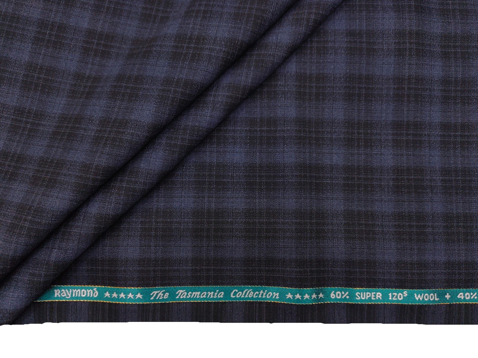 Raymond The Tasmania Collection 60% Wool Super 120s Suiting Fabric (Black And Blue, Checks)