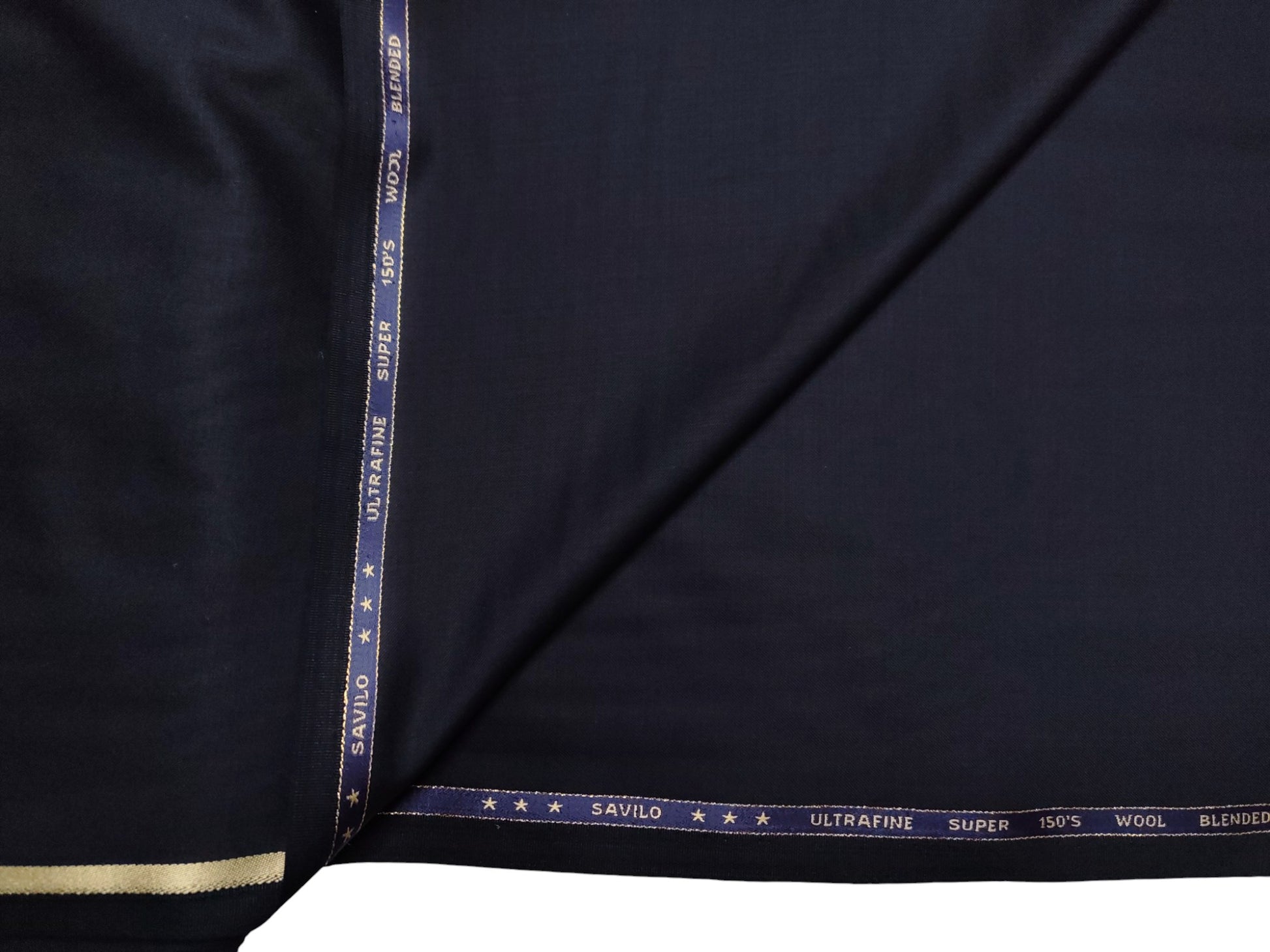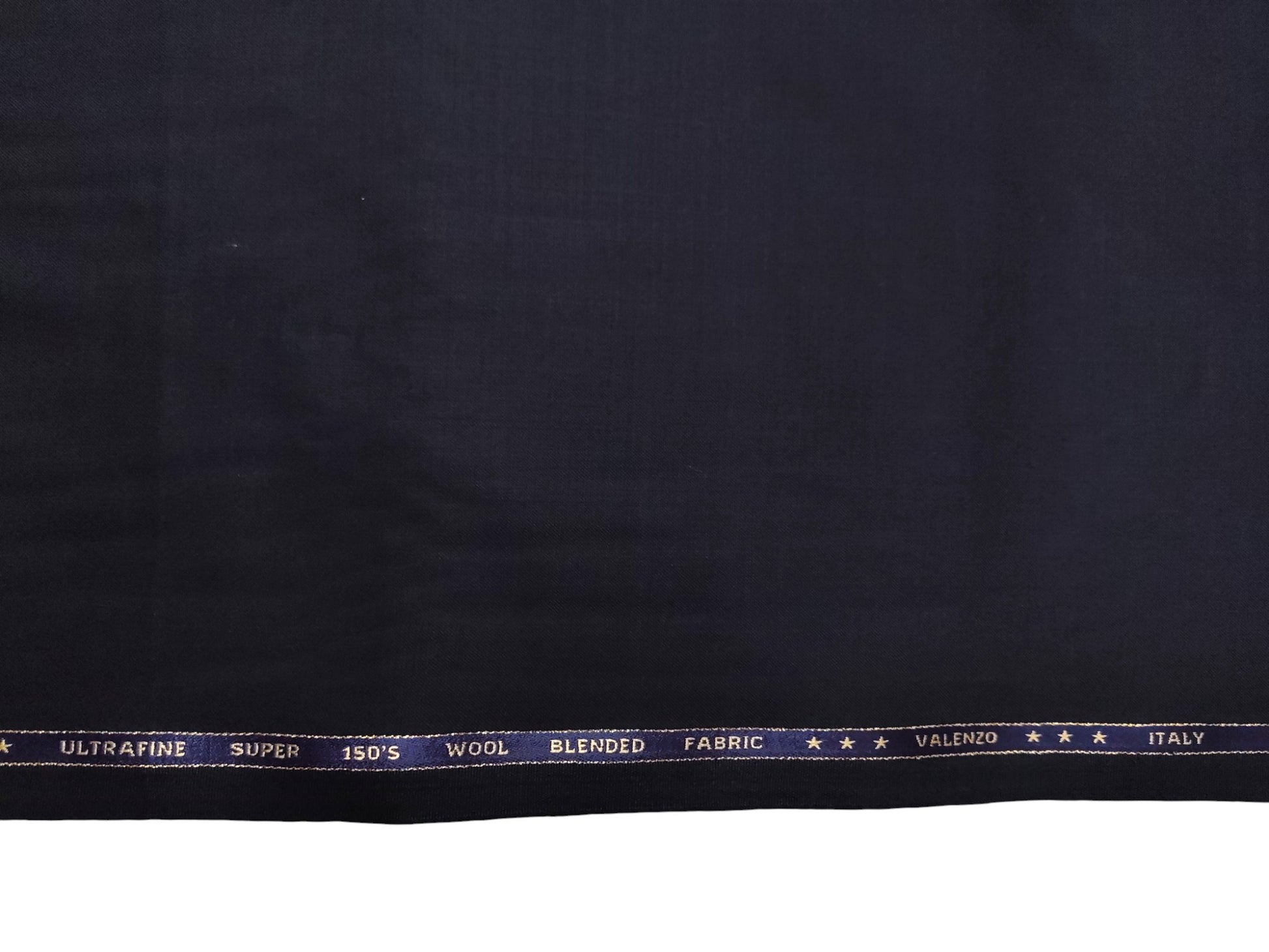 Valenzo 45% Ultrafine 150s Merino Wool Blend Suiting Fabric (Classic Navy Blue, Self Design)