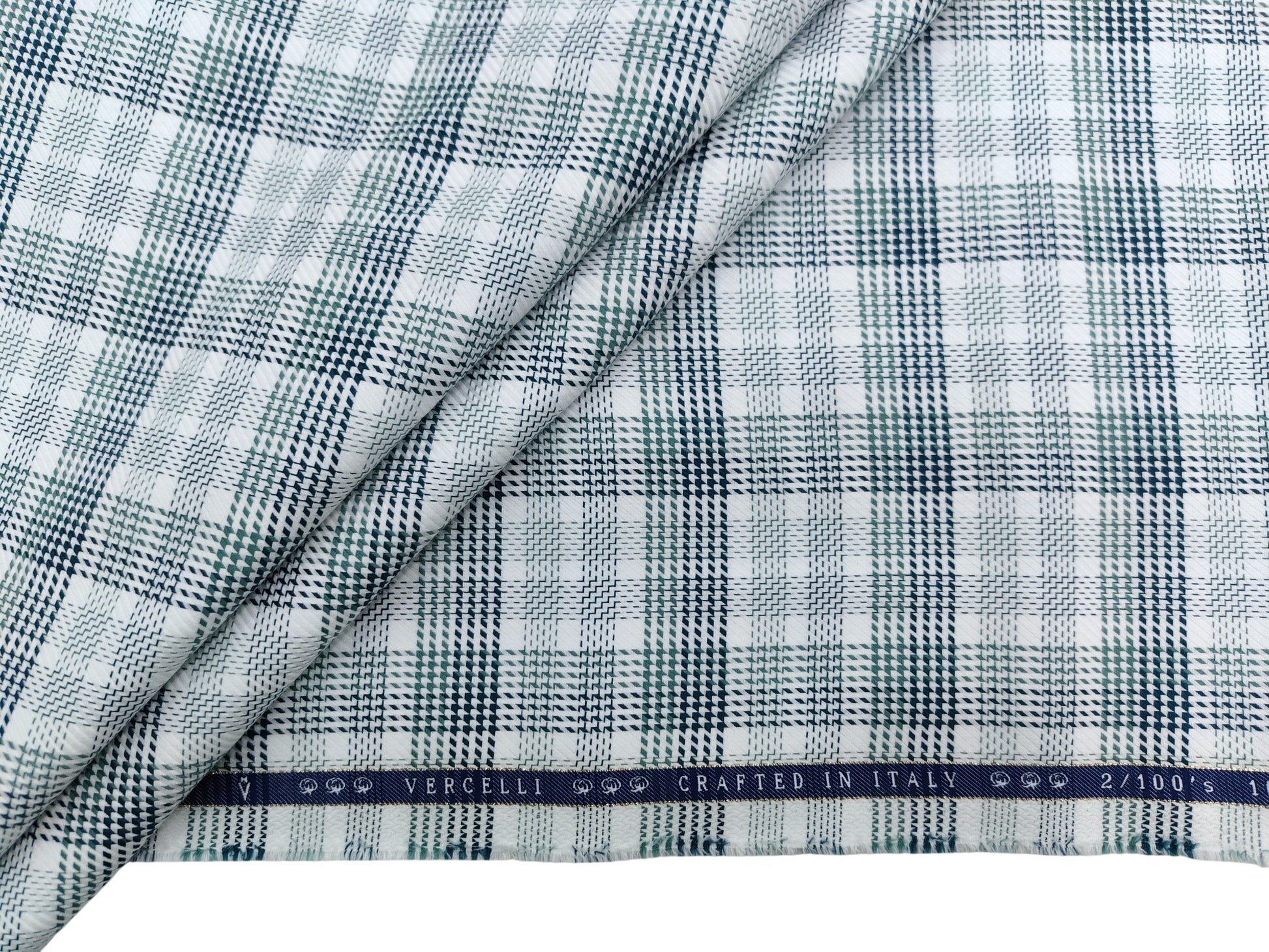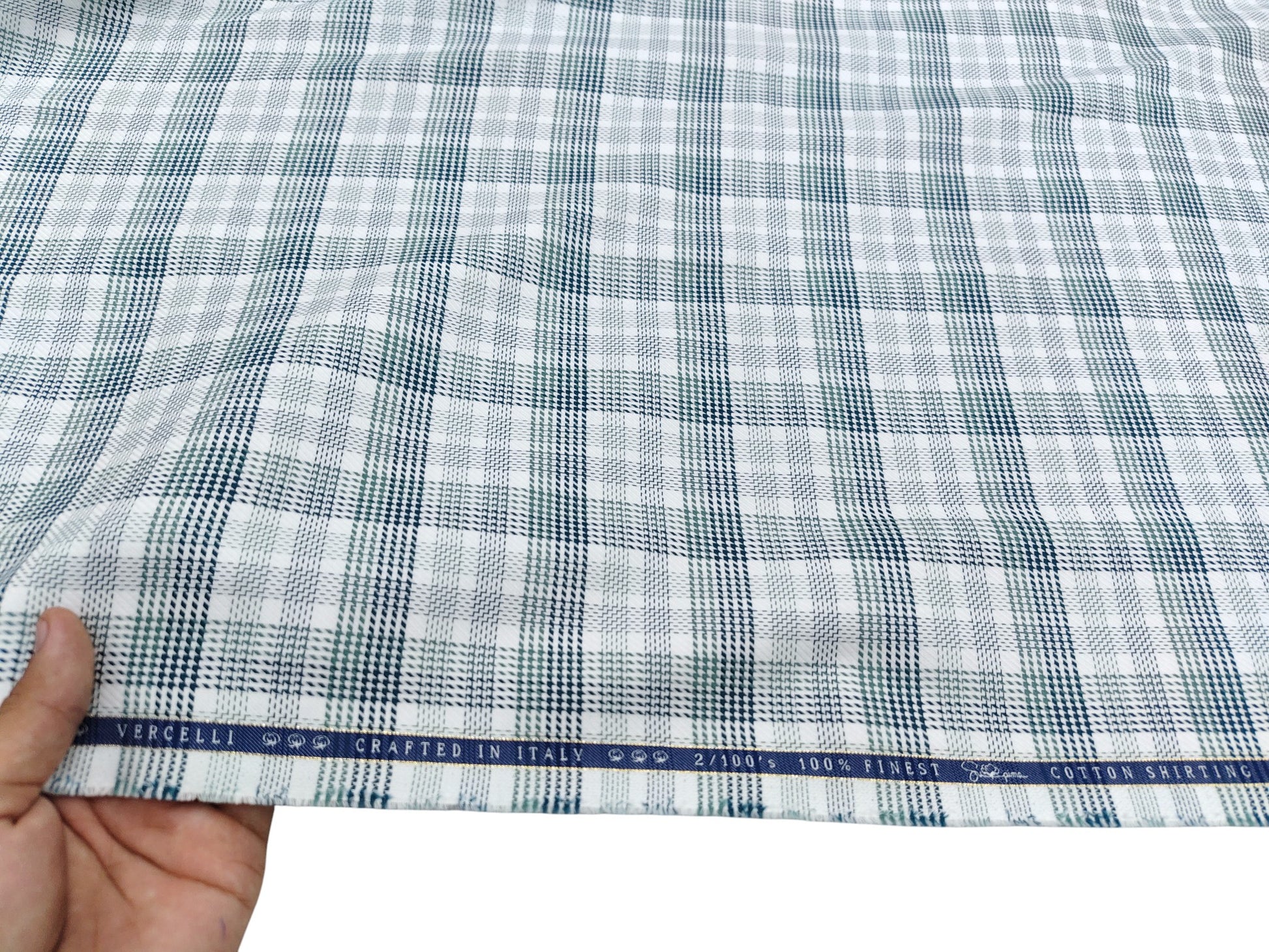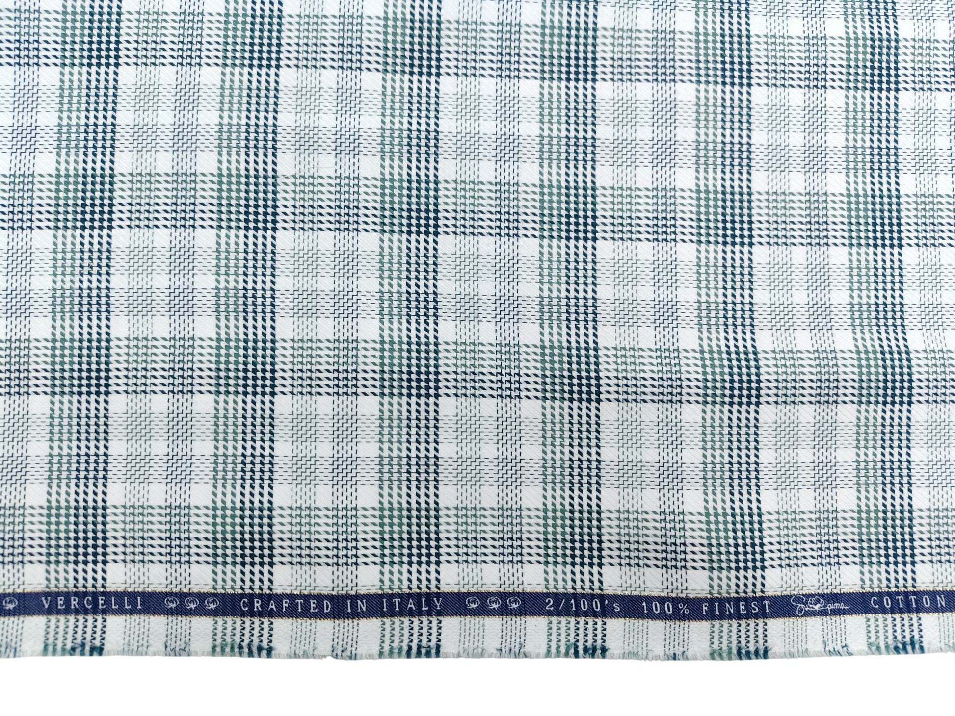 Vercelli Italy 2/100s Finest Supima Cotton Shirting Fabric (White And Green, Multichecks)