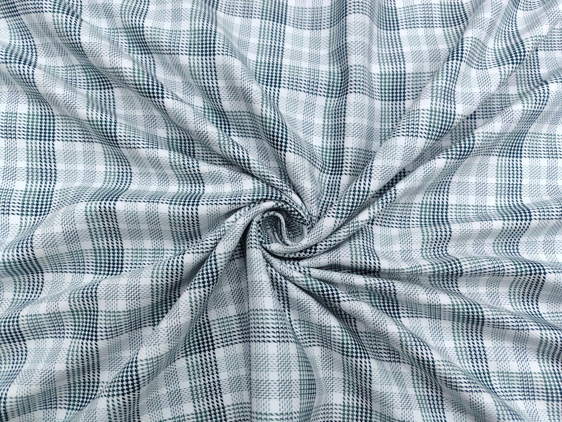 The elegant green and white check pattern adds a refined yet contemporary appeal, making it ideal for office wear, evening occasions, or custom-tailored shirts that make a statement of quiet luxury.
