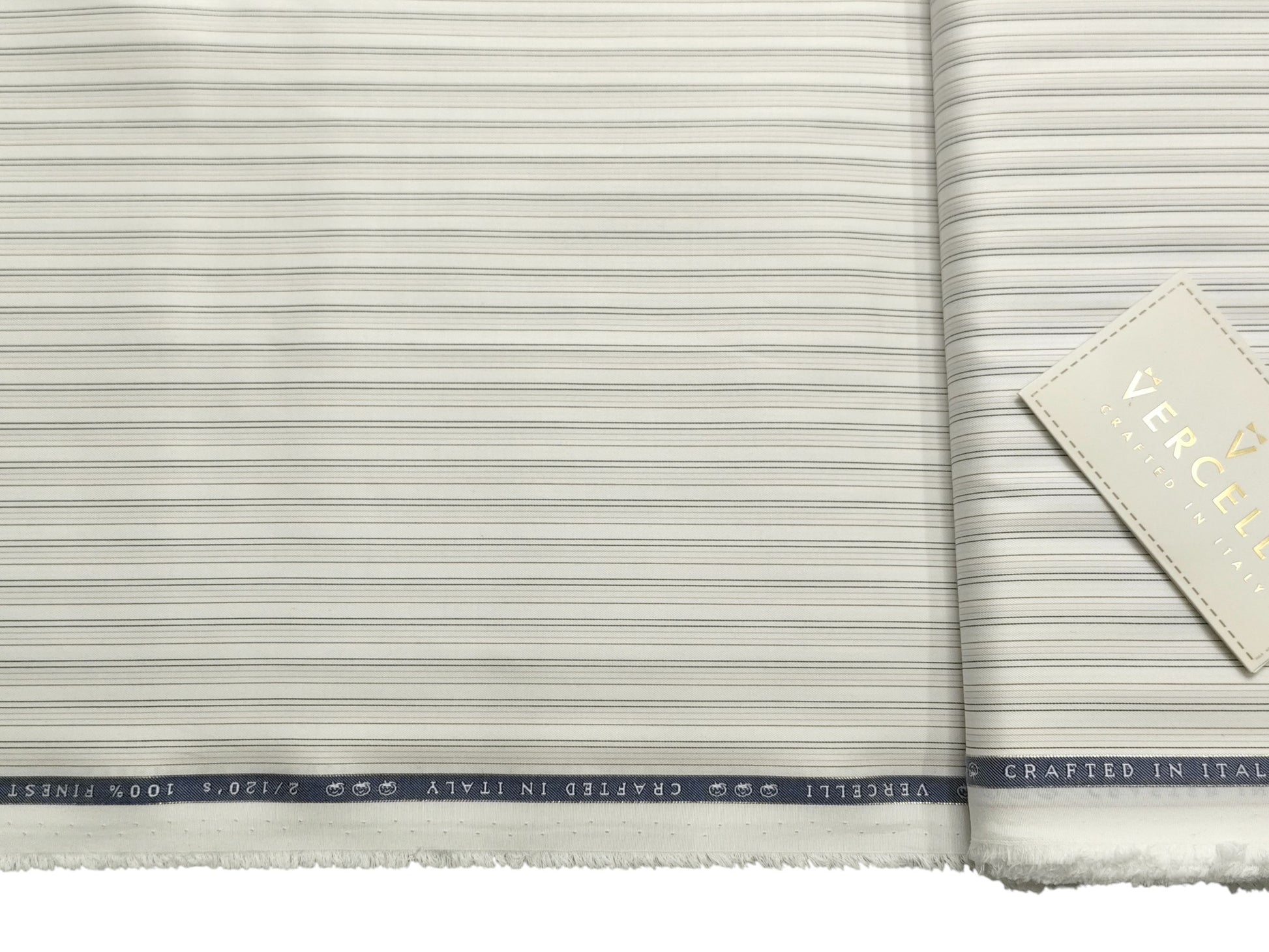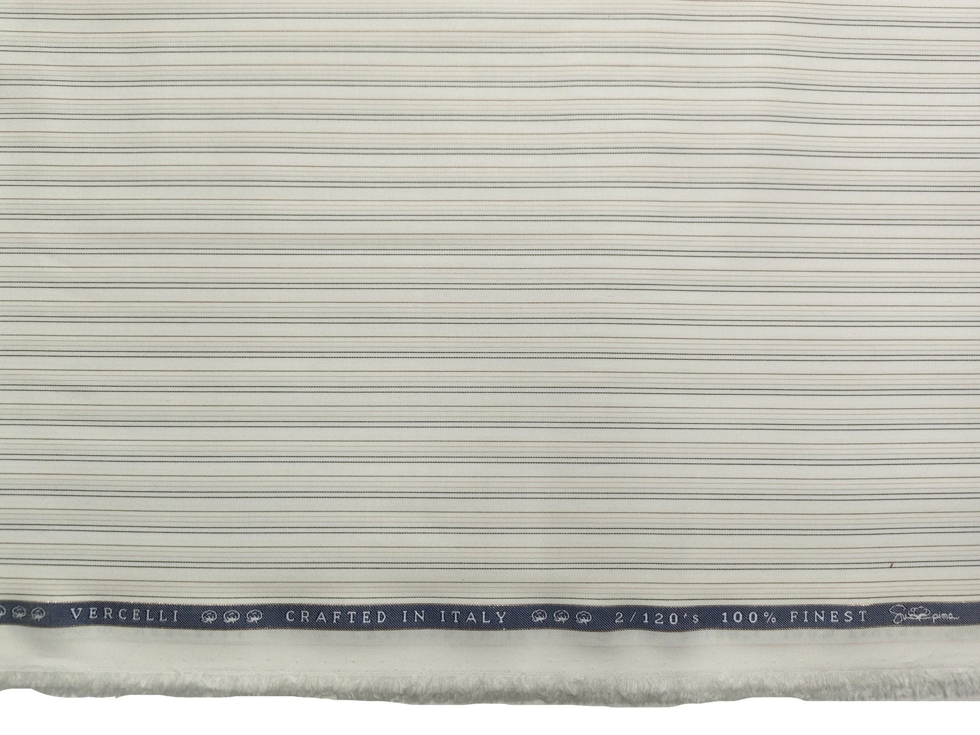 Vercelli Italy 2/120s Finest Supima Cotton Shirting Fabric (White And Brown, Stripes)